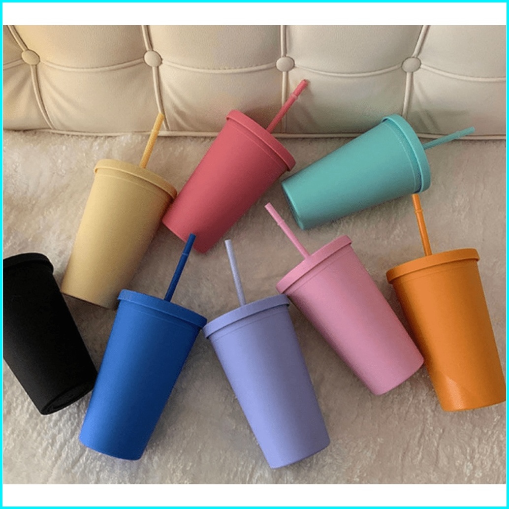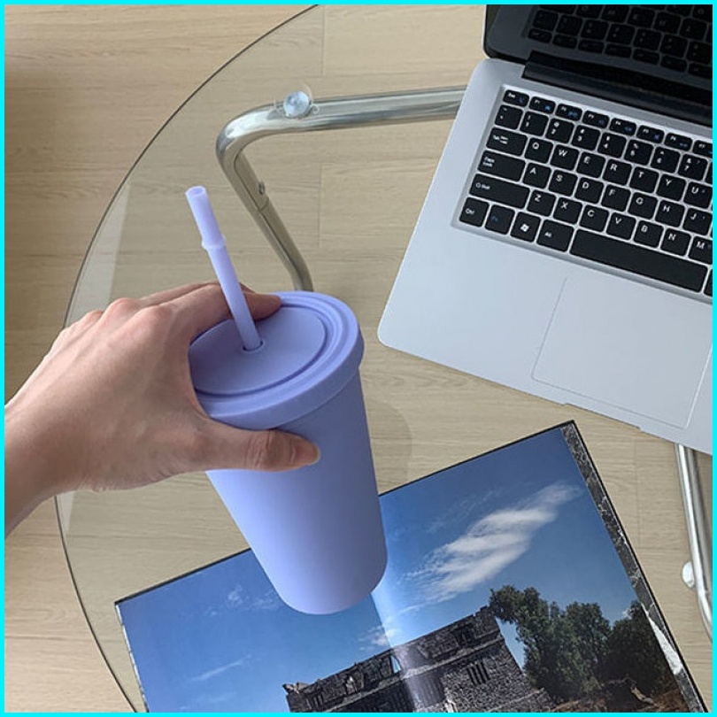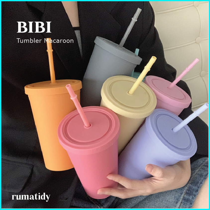 Rumatidybibi Tumbler Macaroon Matte Bhaa Pes Warna-warni 500ml Sedotan