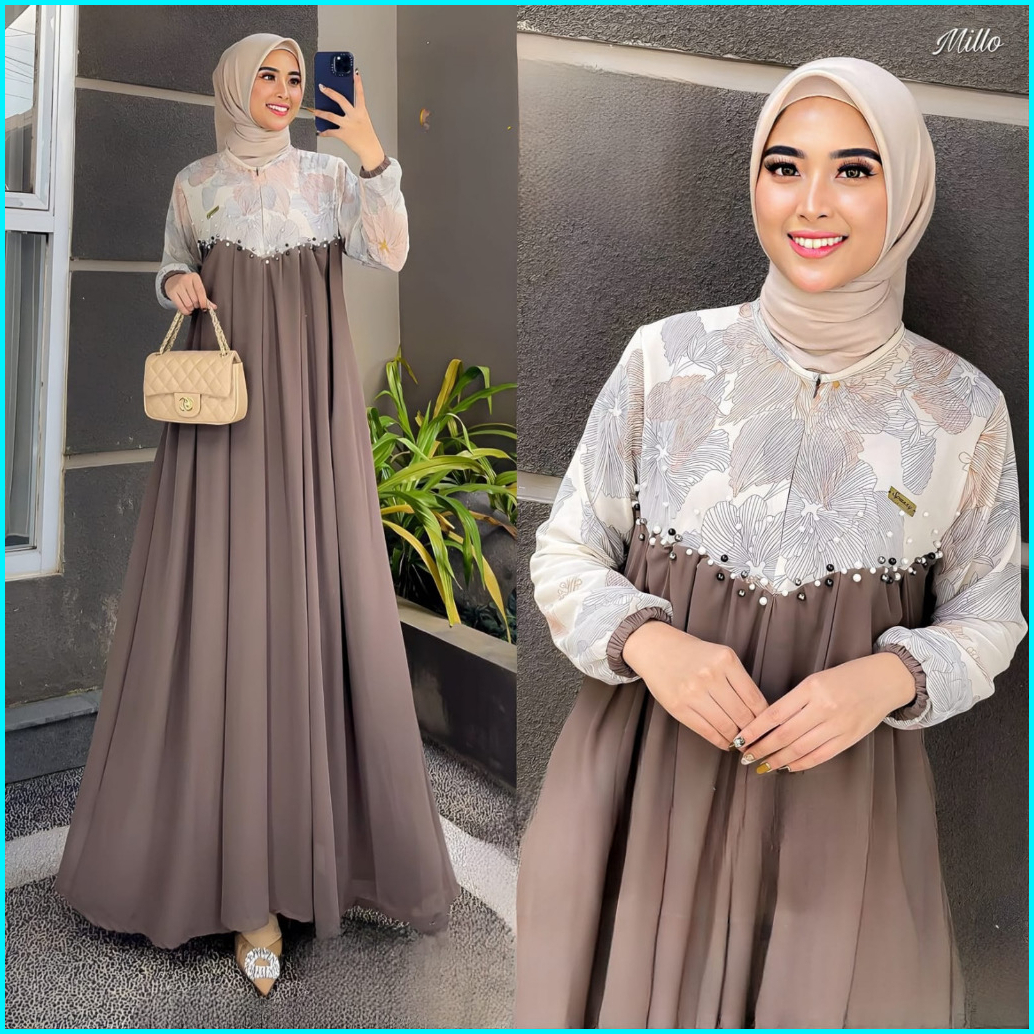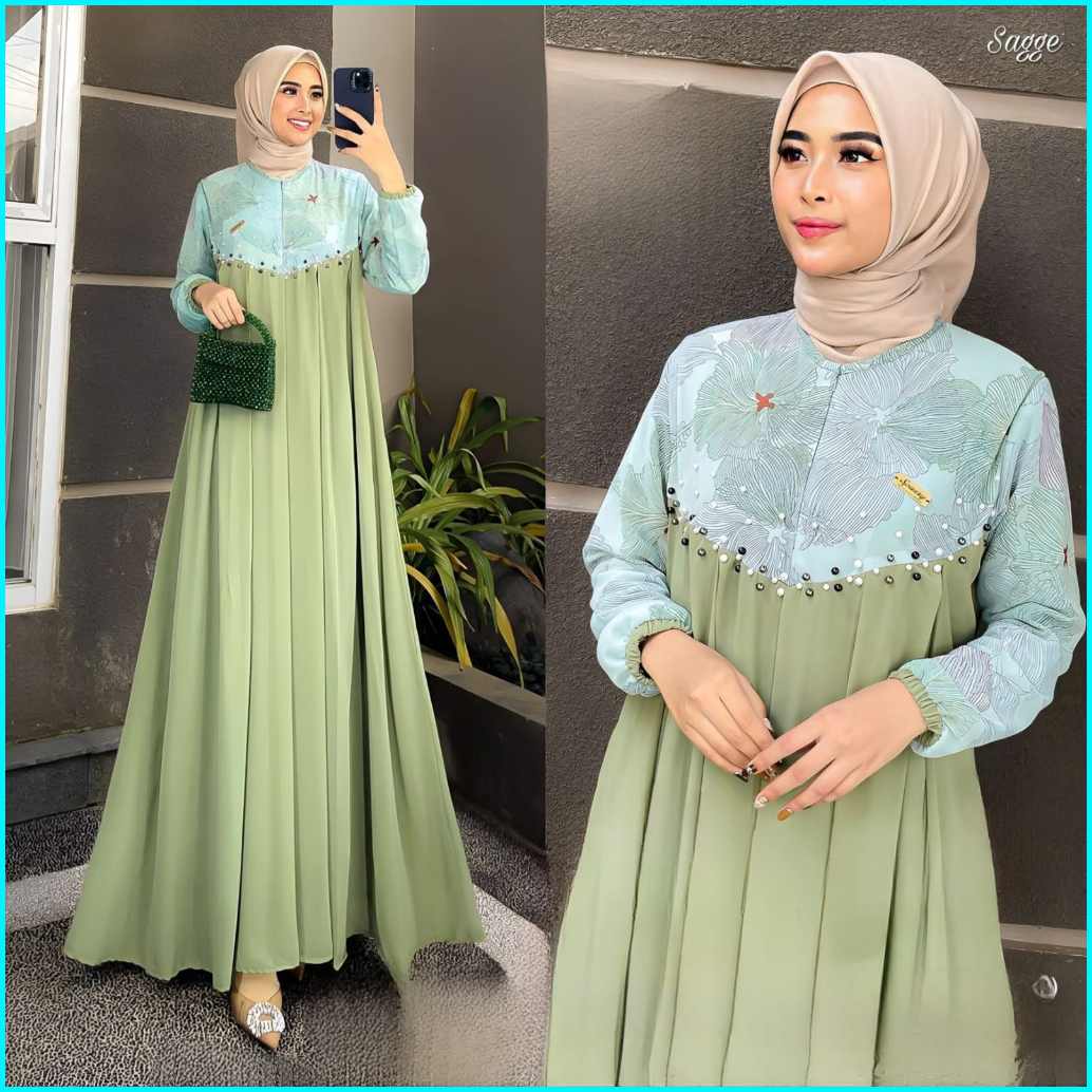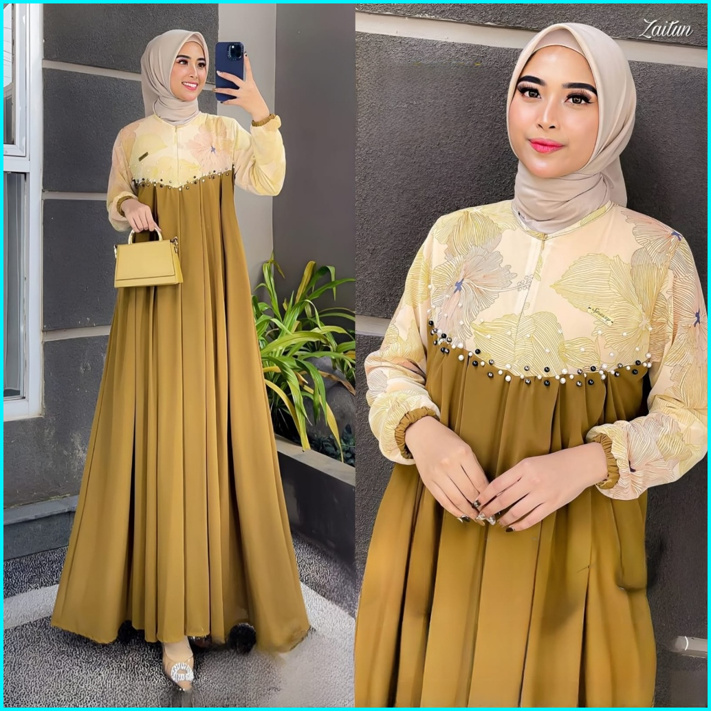 Qifara Dress Gamis Premium Gamis Ceruty Babydoll Terbaru Gamis Kondangan Dress Maxi Fashion Wanita Muslim Busui Aksen Pa