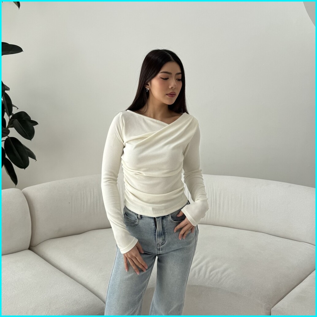 Iota Top Atasan Knit Wanita Korean Top Baju Knit Wanita Lengan Panjang Basic Long Sleeve