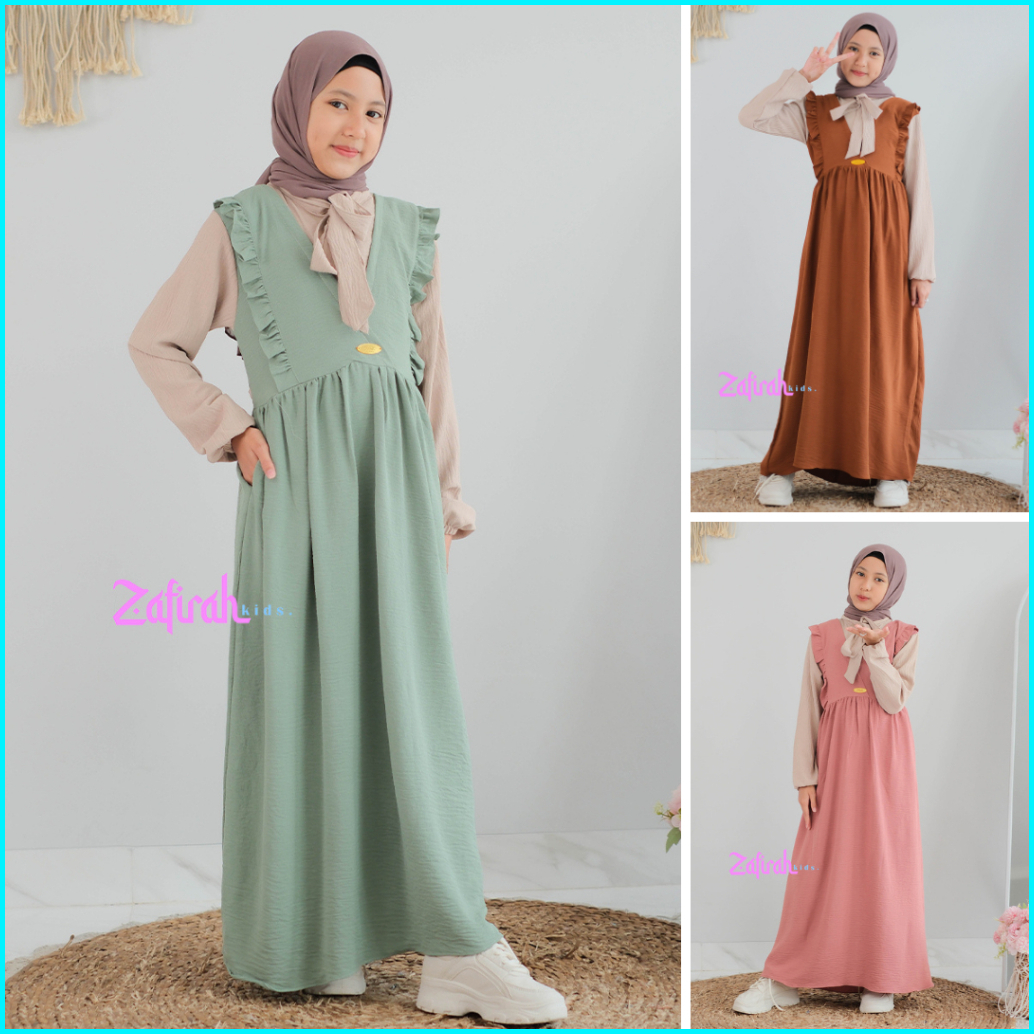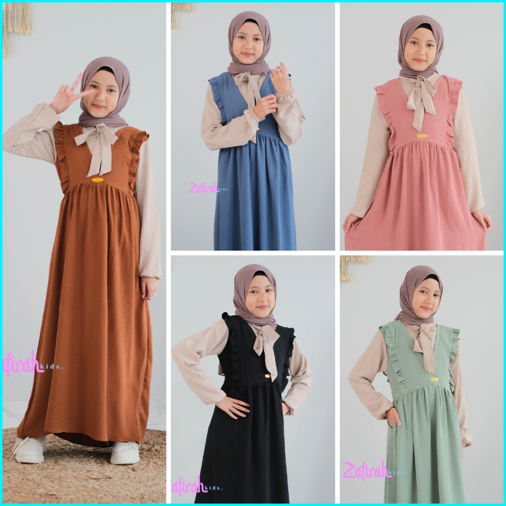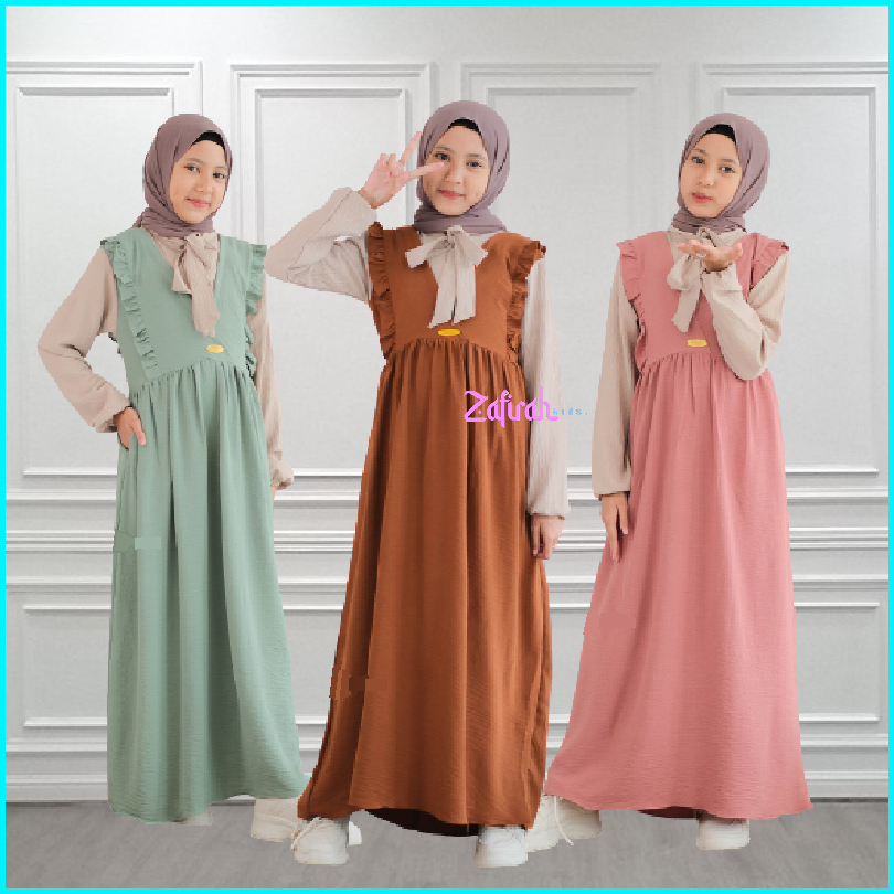 Gamis Anak Perempuan Syaffirah Crinkle Airflow Muslimah Tanggung Terbaru Kekinian Usia 7 Sampai 14 Tahun Bahan Premium B
