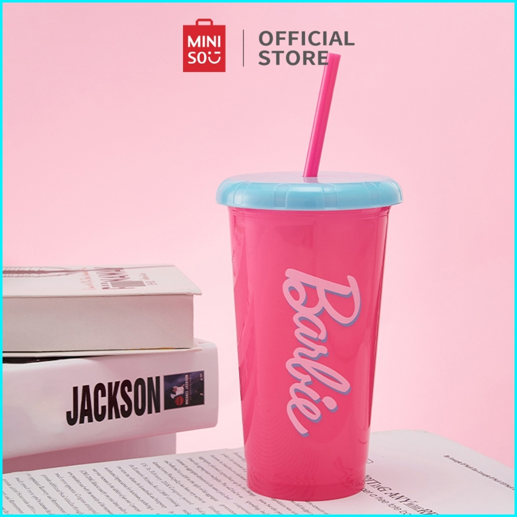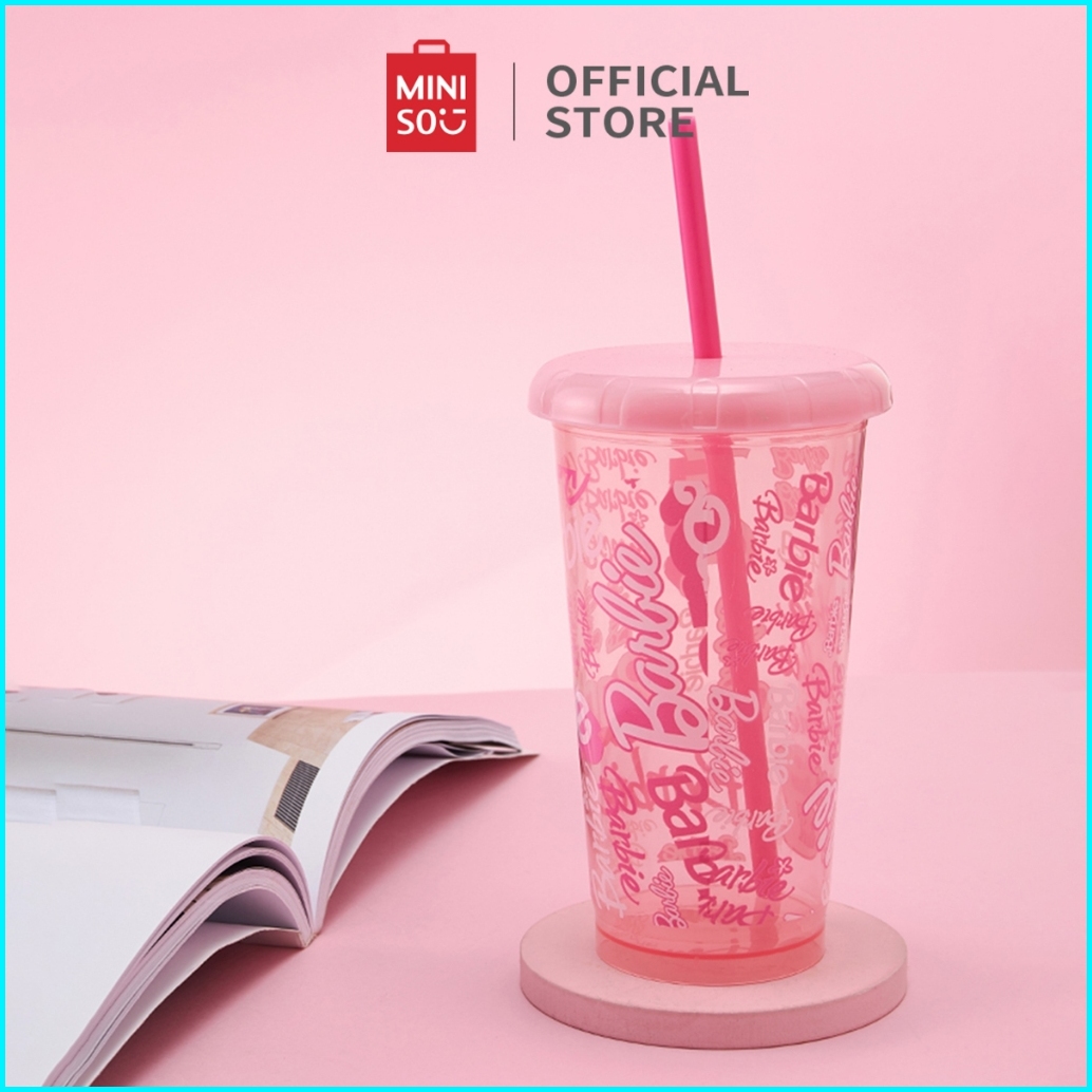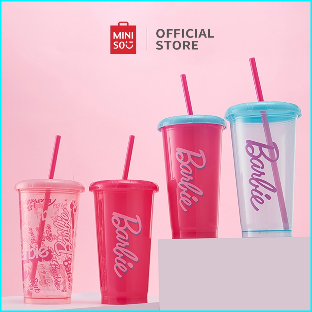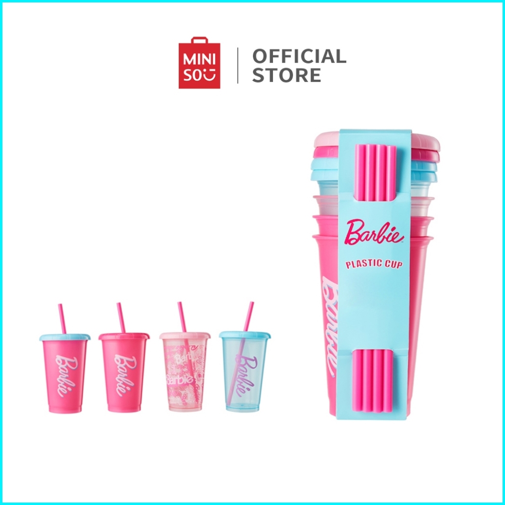 Miniso X Barbie Shining Collection Gelas Plastik 4 Pcs Dengan Sedotan Cangkir Minum Desktop Plastic Tumbler 520ml