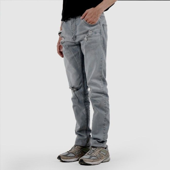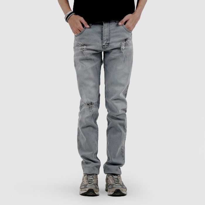 (TERMURAH)Fairgoods Celana Jeans Panjang Arka Ripped Light Grey Slimfit - 28