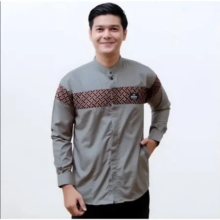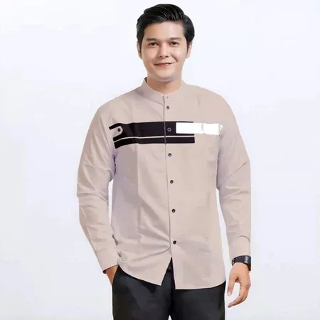 Baju Koko Pria Lengan Panjang Motif Kobata Kombinasi Warna Coklat Putih Hitam