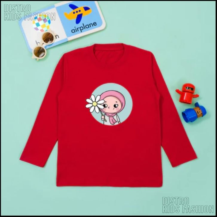 Baju Kaos Anak Perempuan Usia 1-12 Tahun Kaos Anak Muslimah Baju Atasan Lengan Panjang Motif Hijab Bulat