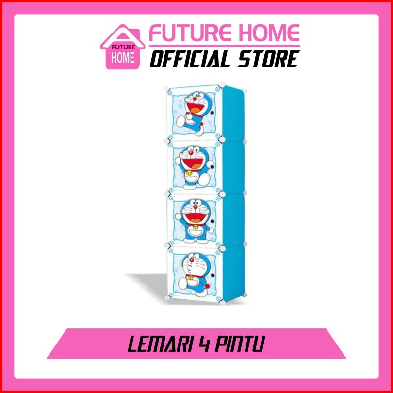 Lemari Pakaian Plastik Portable 4 Pintu Lemari Serbaguna Lemari Hemat Tempat Lemari Multifungsi