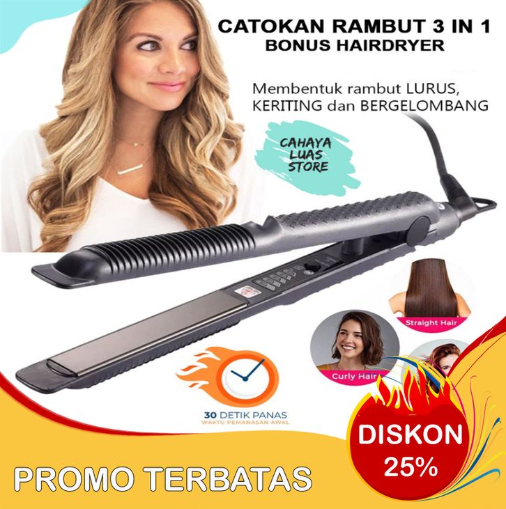CATOK 3 IN 1, CATOK FREE HAIRDRYER, Catok Kemei, Paket Catok kemei