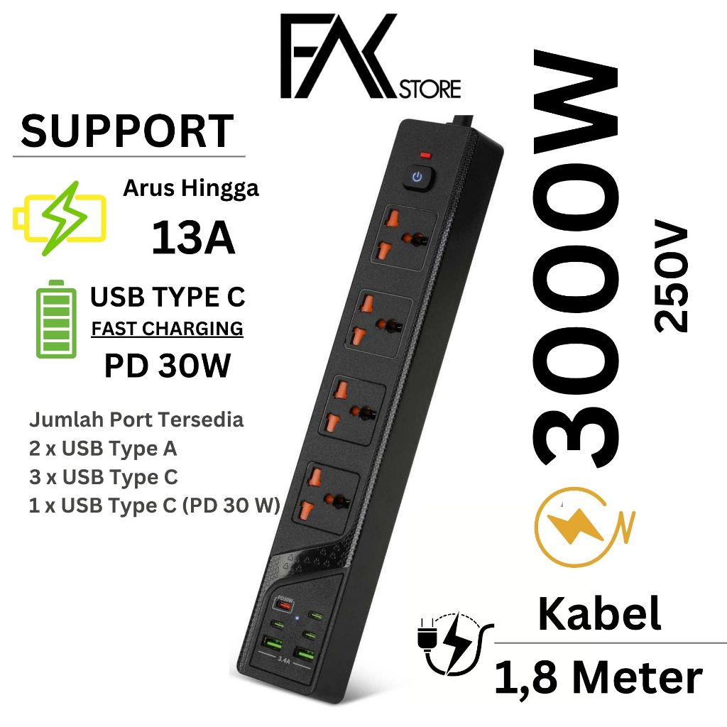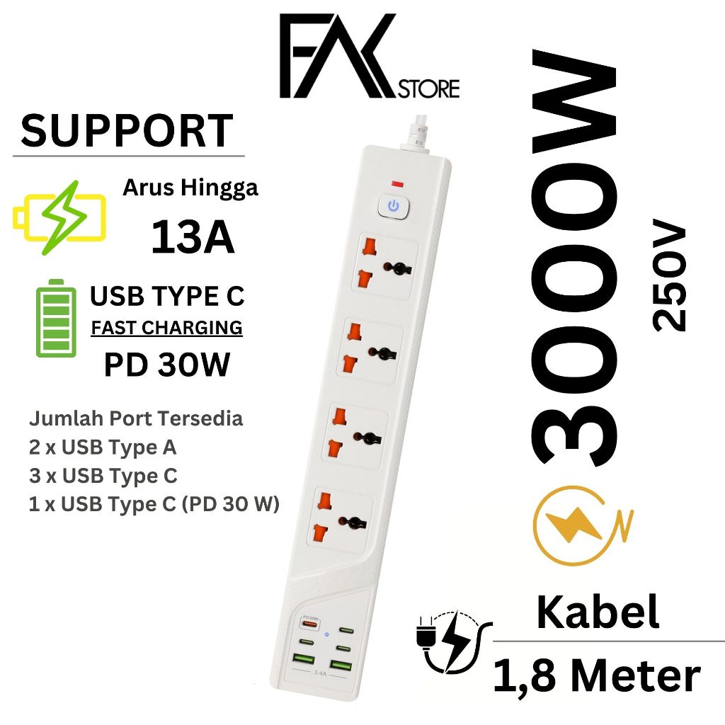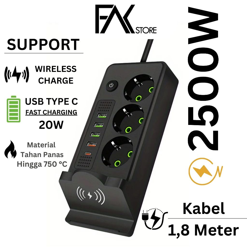 FS Power Port Stop Kontak Kabel USB Type C Wireless Charging Serbaguna