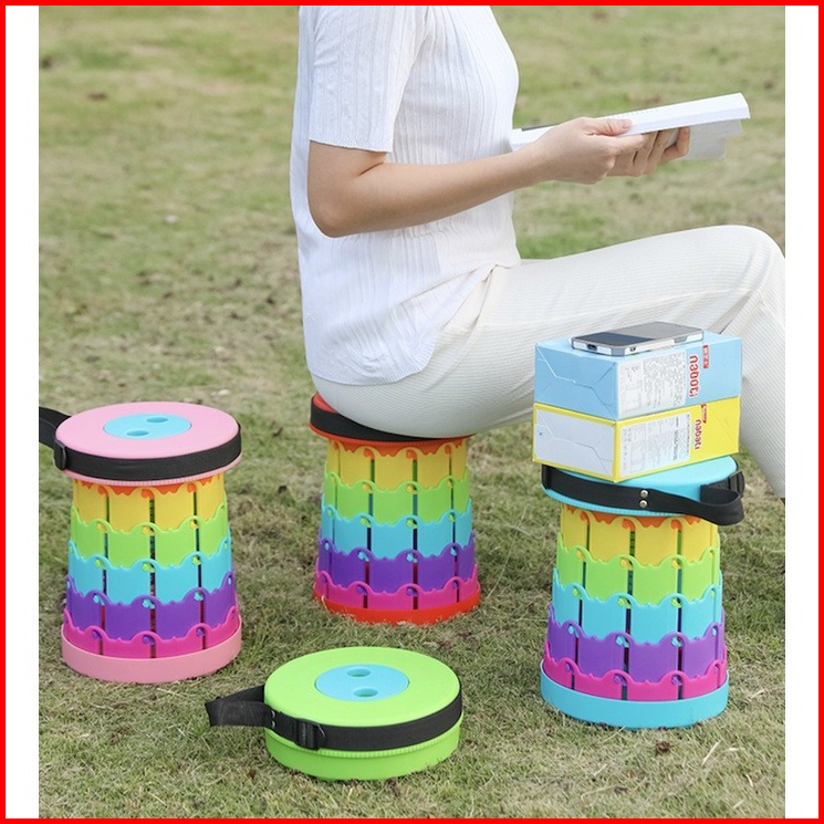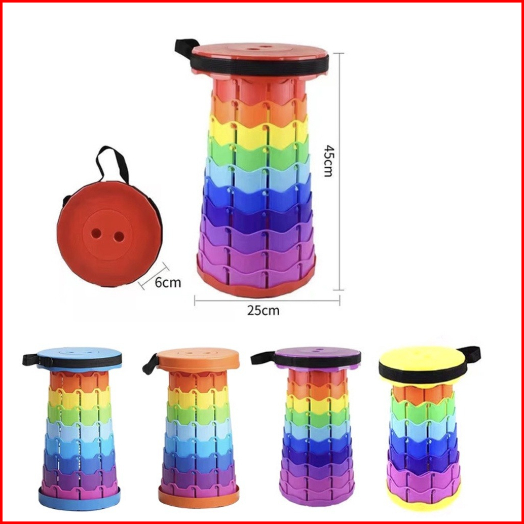 Kursi Lipat Bulat Portable Rainbow Bangku Lipat Outdoor Kursi Pancing Plastik 150kg- Rainbow Deli Chair