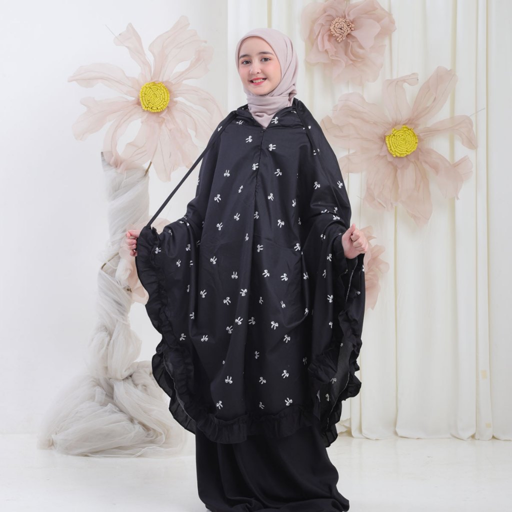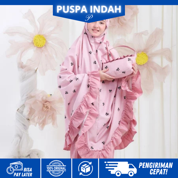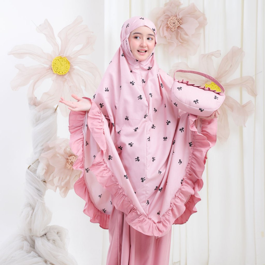 Mukena Anak Usia 6-12Th Katun Motif Remple Premium Kombinasi Resleting Dagu 2in1
