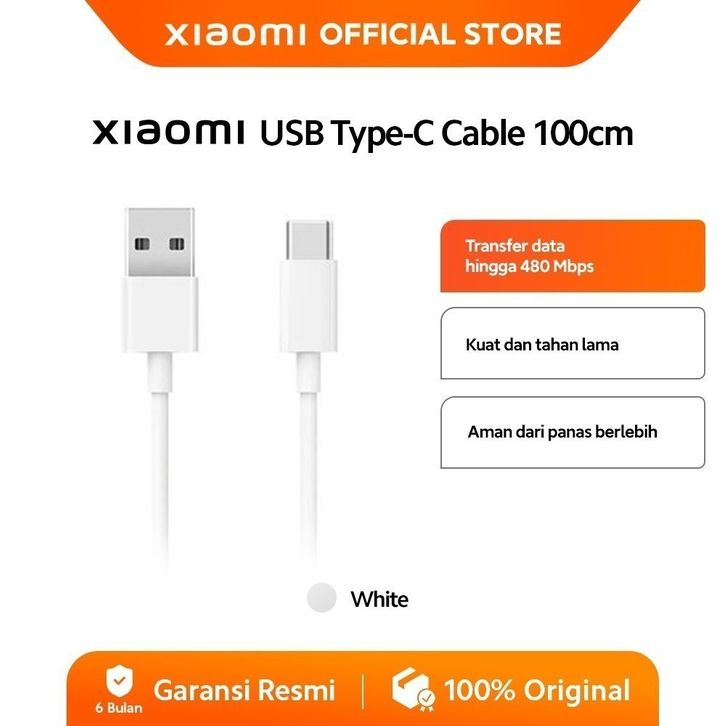 Kabel Data Xiaomi USB-C 100 cm ORIGINAL Cable Charger Terintegrasi Kuat dan Tahan Lama
