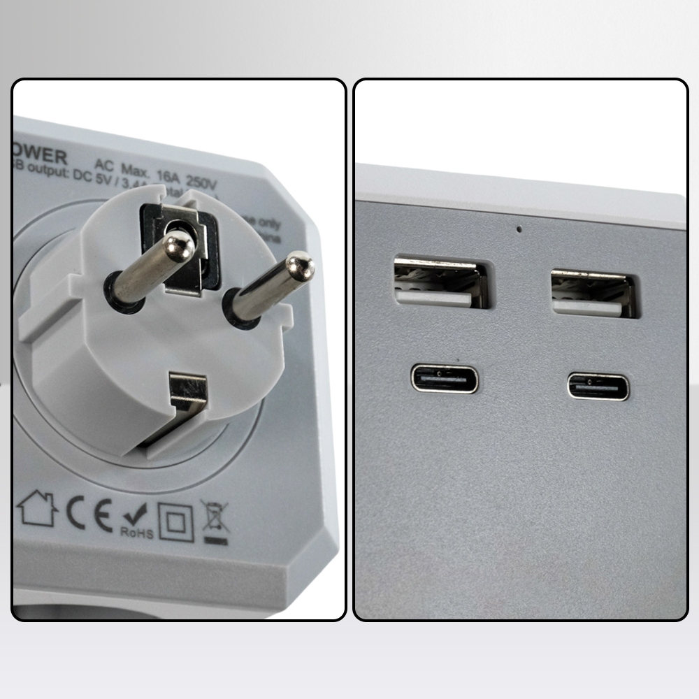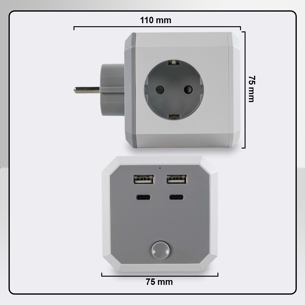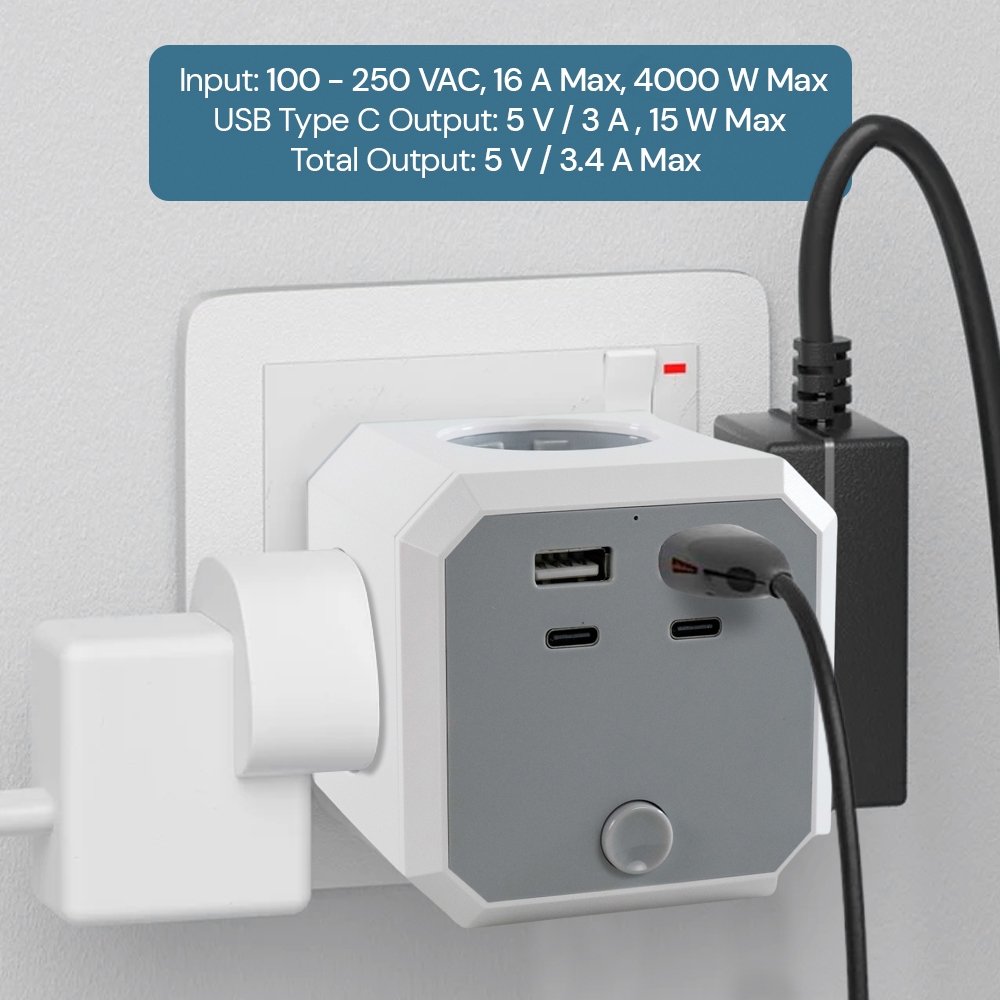 Stop Kontak Colokan EU 7/8 in 1 USB Type C Port Cube Wall Socket Extension Kompak Portable Safety Universal Anti Rusak