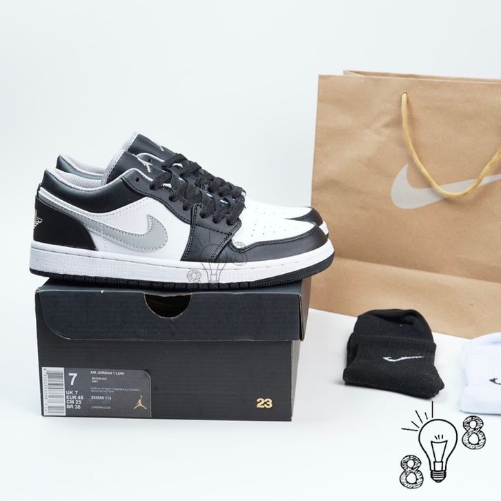 Sepatu Sneakers Pria Wanita Nike Air Jordan 1 Black Medium Grey Low Original BNIB Grade Vietnam Premium Quality