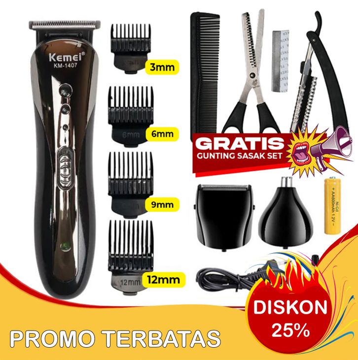 KEMEI Alat Cukur Portable Trimmer Pemotong Rambut Brewok Kumis Battery