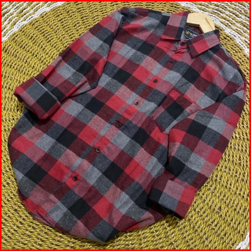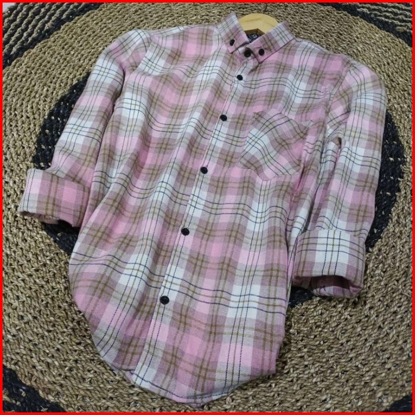 Flanel Wanita Lengan Panjang Kemeja Flanel Kotak Pink