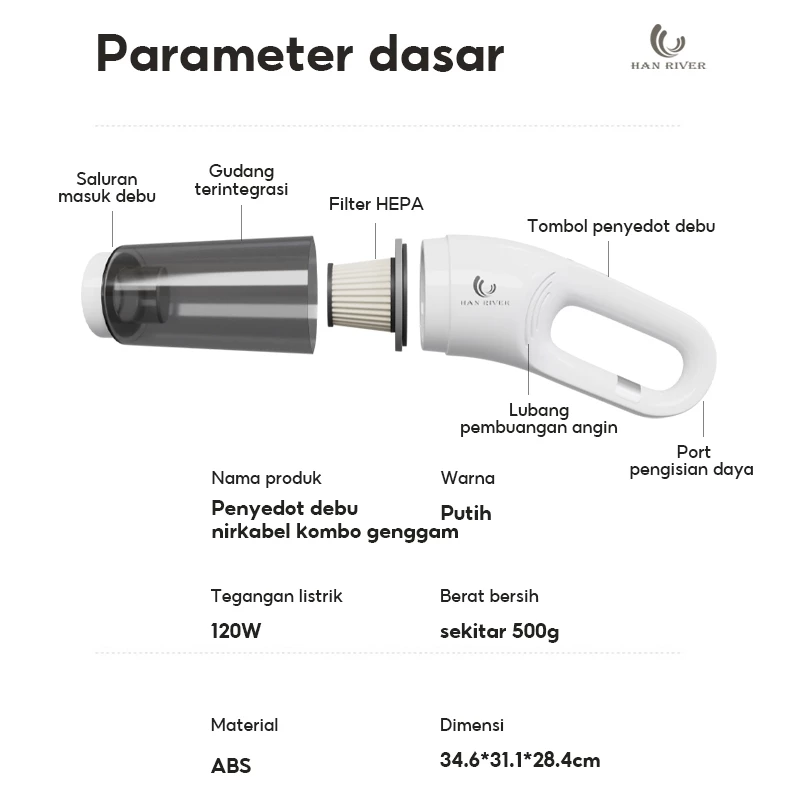 HAN RIVER Vacum Cleaner 20000Pa rumah dan mobil 5 in 1 Vacuum Cleaner Pembatalan Kebisingan Bass