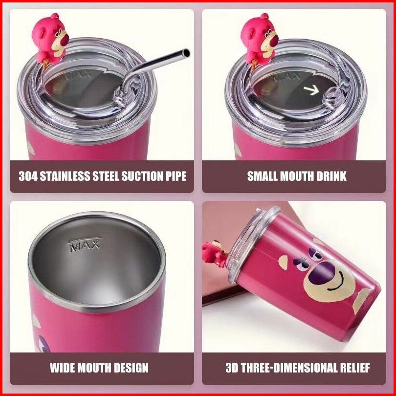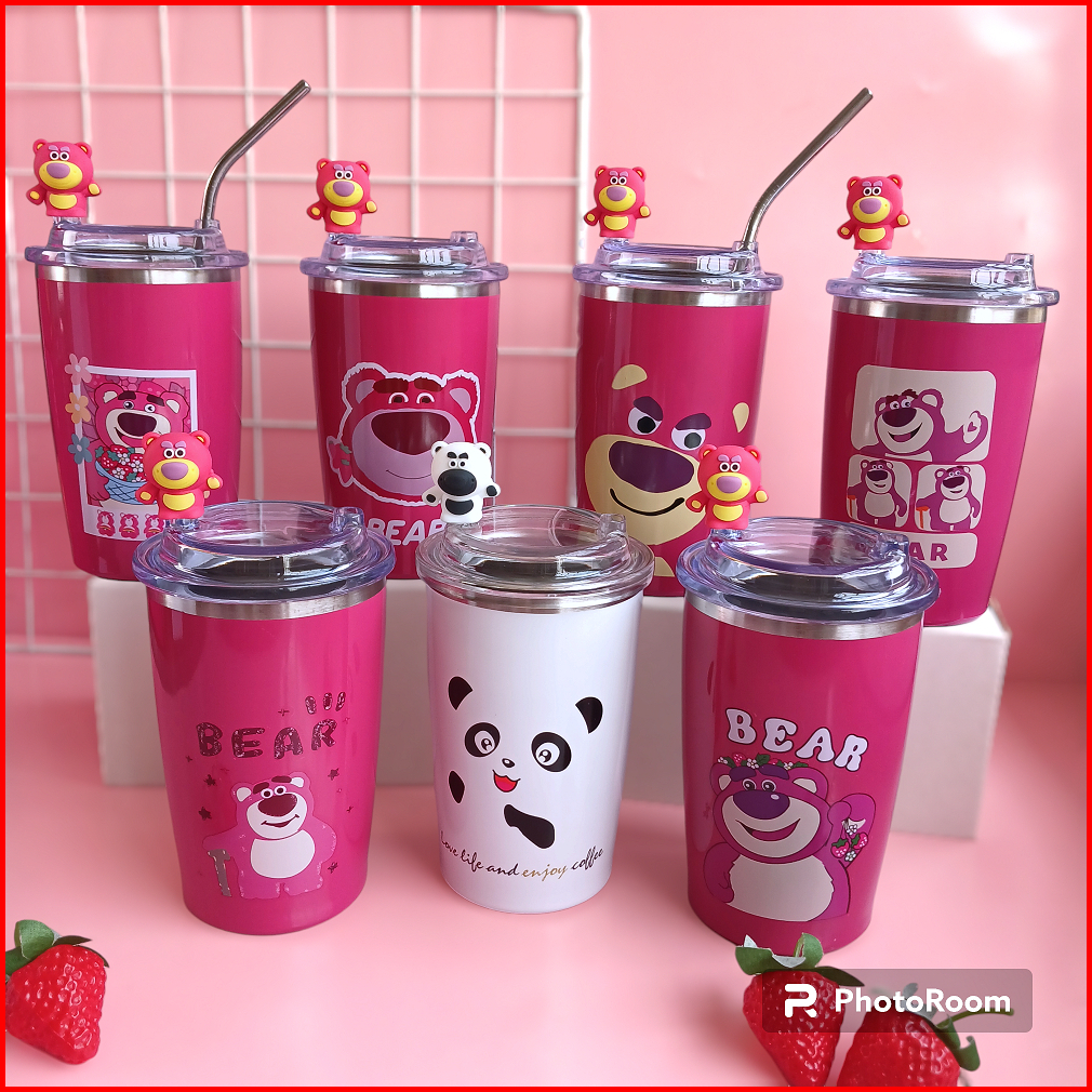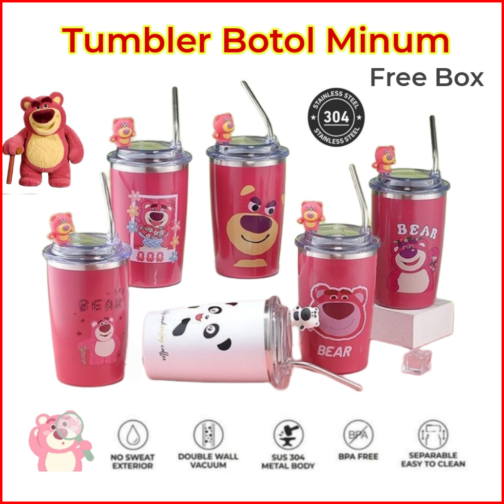 Tumbler Gelas Stainless Lotso Termos Tumbler Motif Lotso 500ml Free Box Sedotan Gelas Mug Coffee