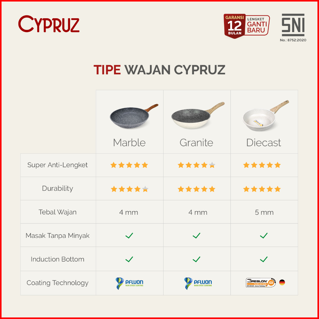 Cypruz Wajan Penggorengan Anti Lengket Fry Pan Marble Induksi 20cm