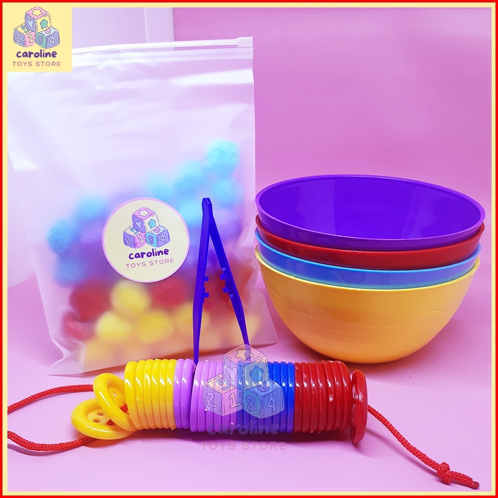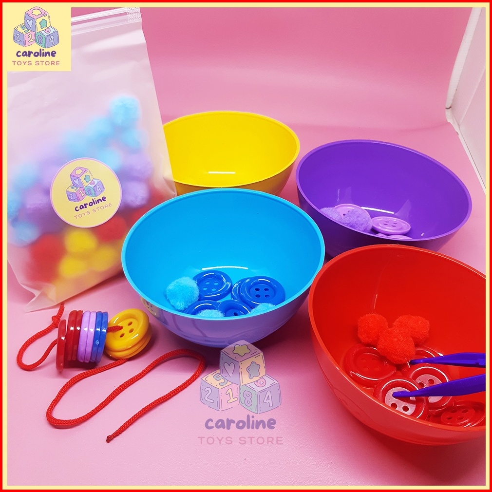 Mainan Edukasi Anak Sorting Color Montessori Capit Pompom Memasukan Kancing