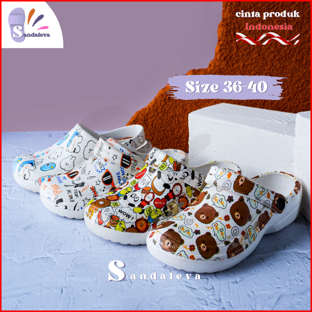 Sandal Kodok Dewasa Printing Motif Karakter Lucu Unisex Size 36-40 Bahan Karet Eva 100