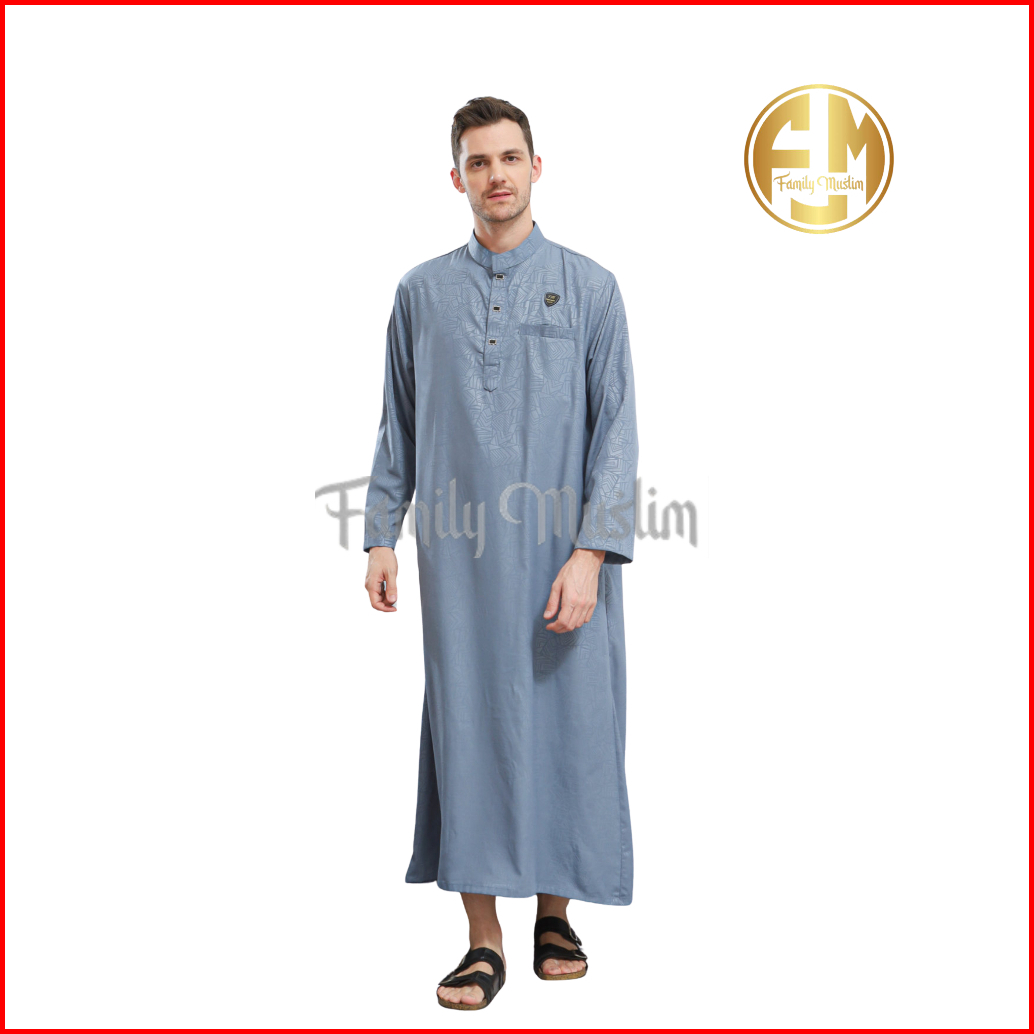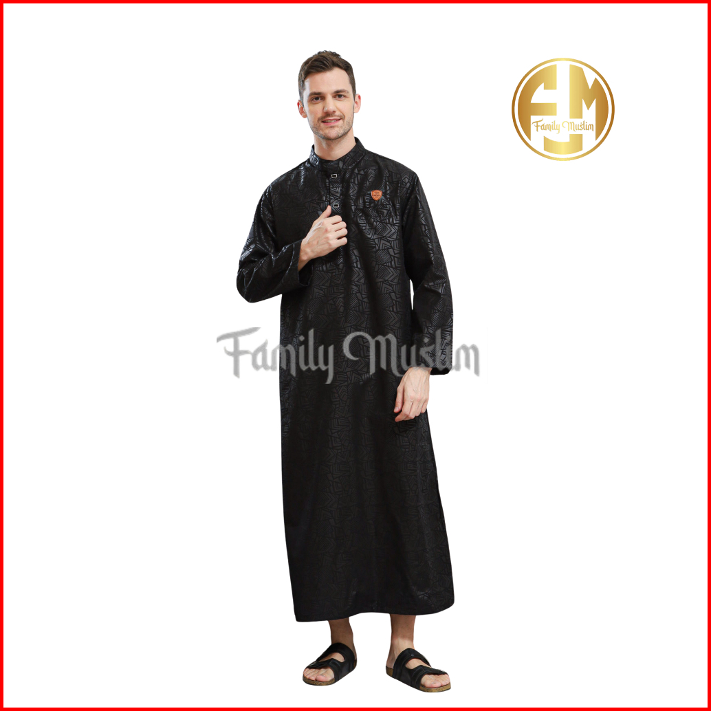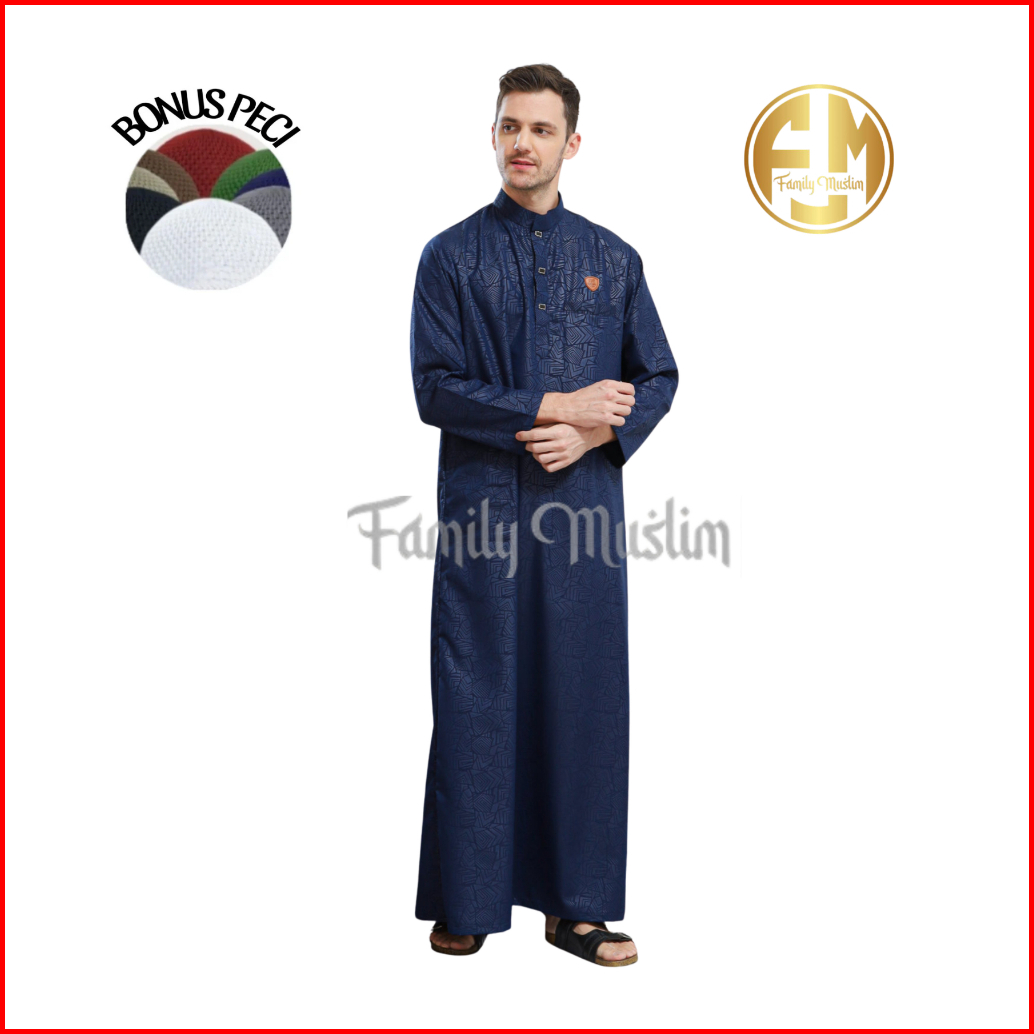 Family Muslim - Jubah Gamis Pria Dewasa Lengan Panjang Slimfit Plus Peci Bahan Emboss As-sultan Navy