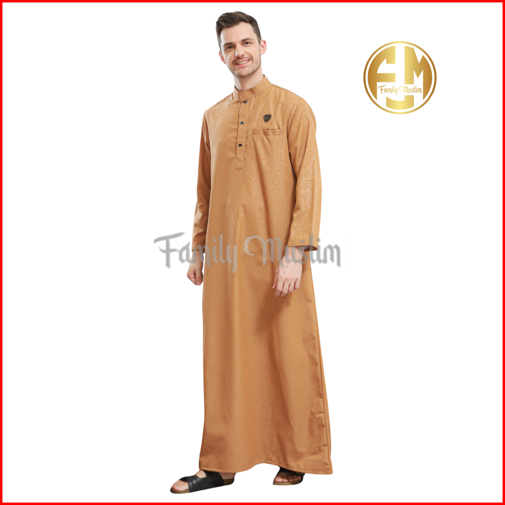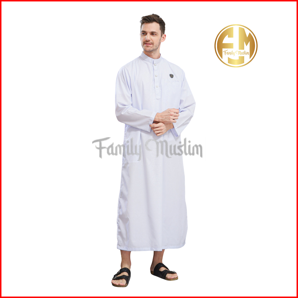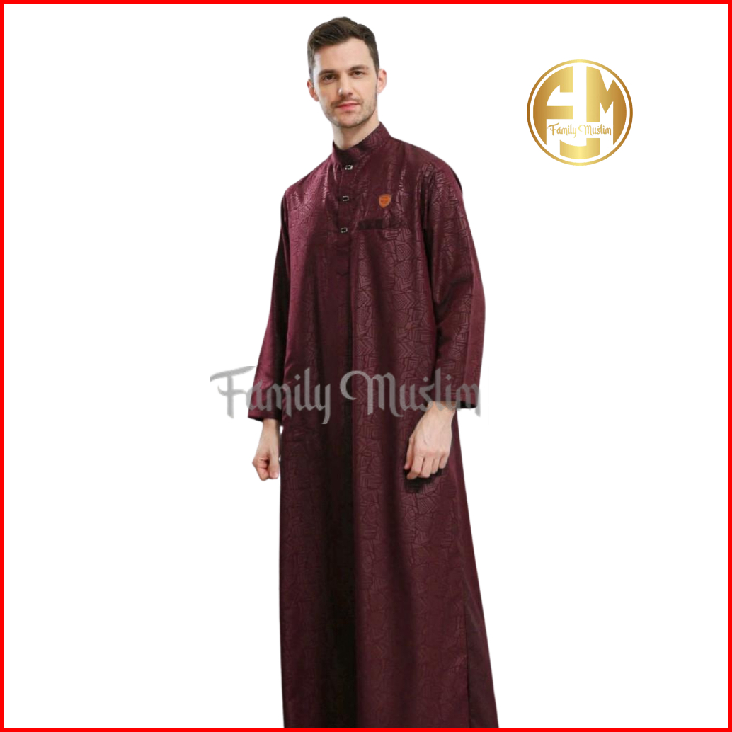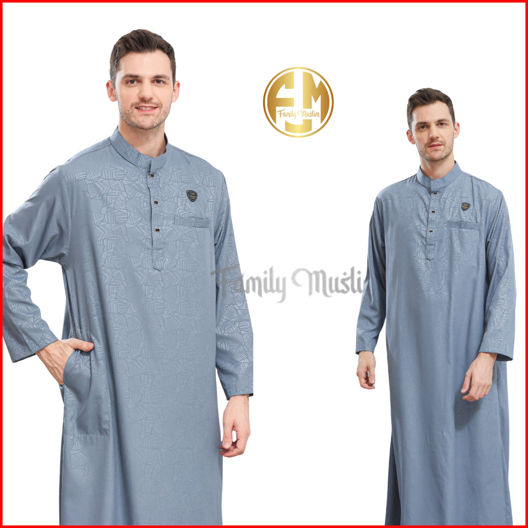 Family Muslim - Jubah Gamis Pria Dewasa Lengan Panjang Slimfit Plus Peci Bahan Emboss As-sultan Navy
