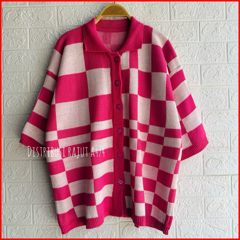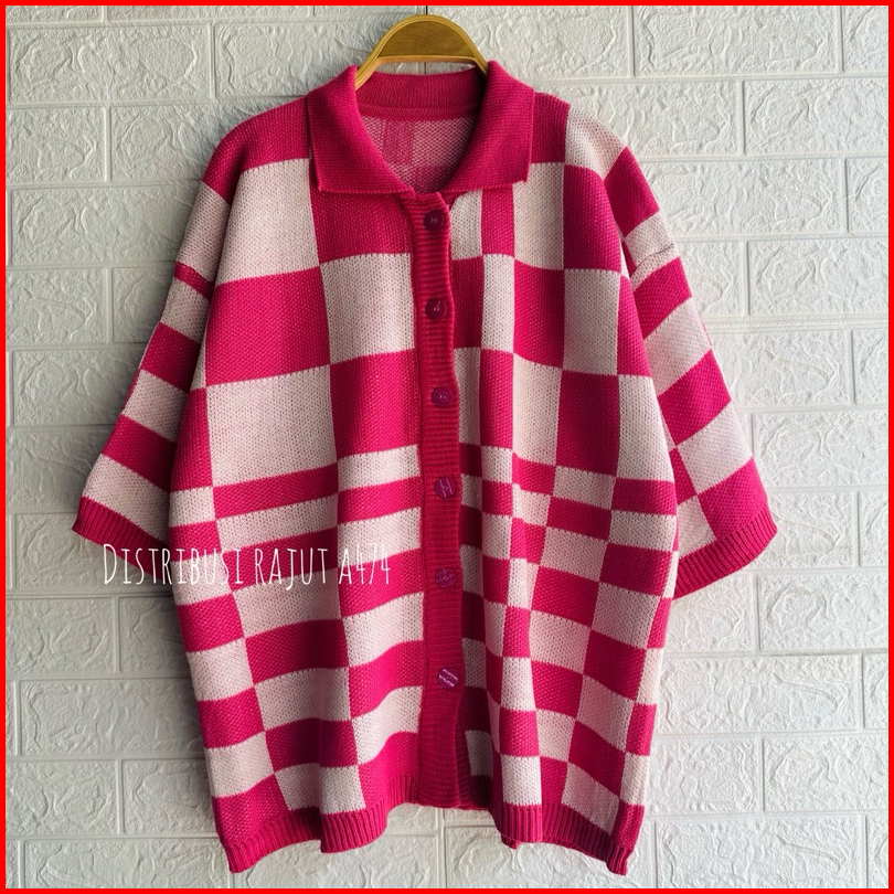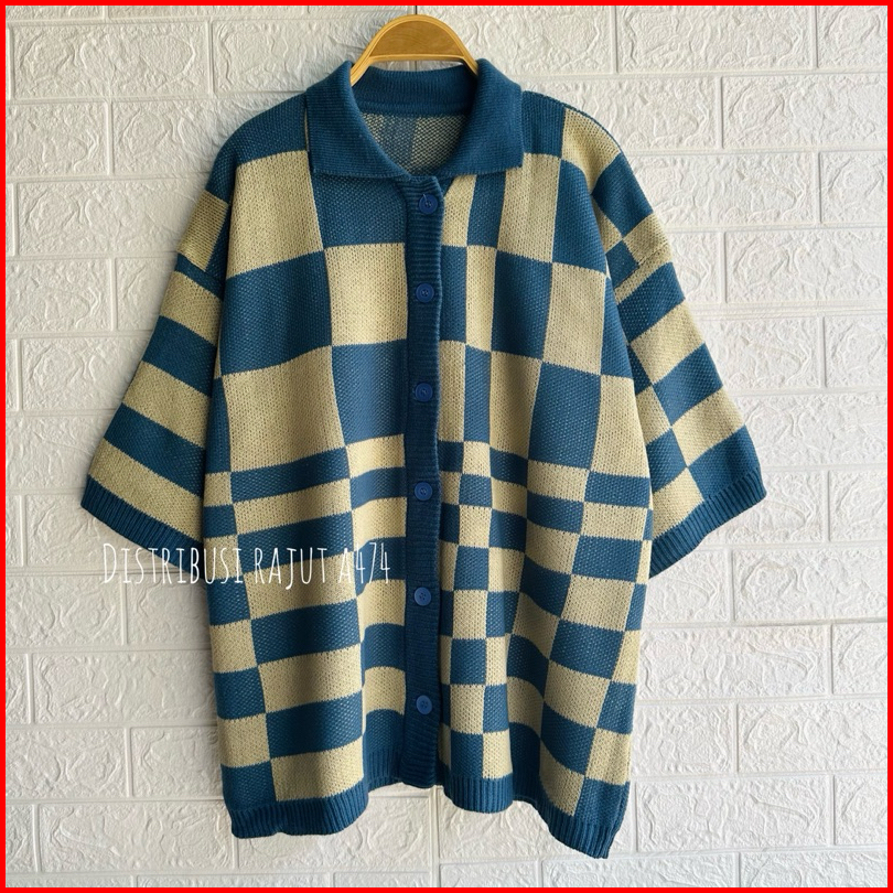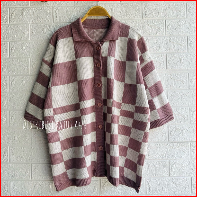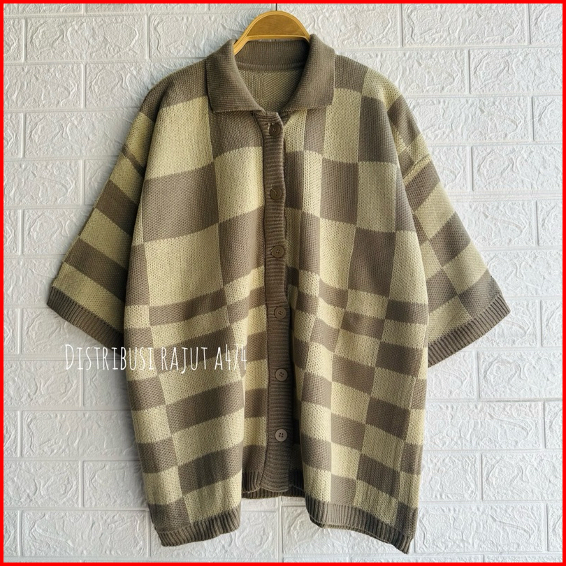 Knitwear Outfit Fuji Cardigan Rajut Motif Kotak Oversize