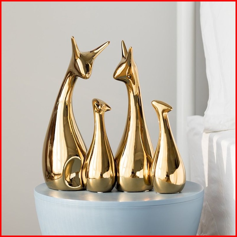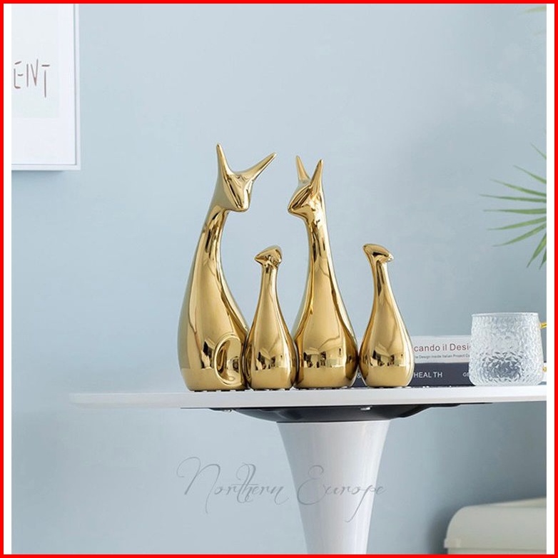 Ornamen Set Rusa 4pc Pajangan Rusa Set Isi 4 Pajangan Rusa Keramik Family Home Patung Dekorasi Golden Deer