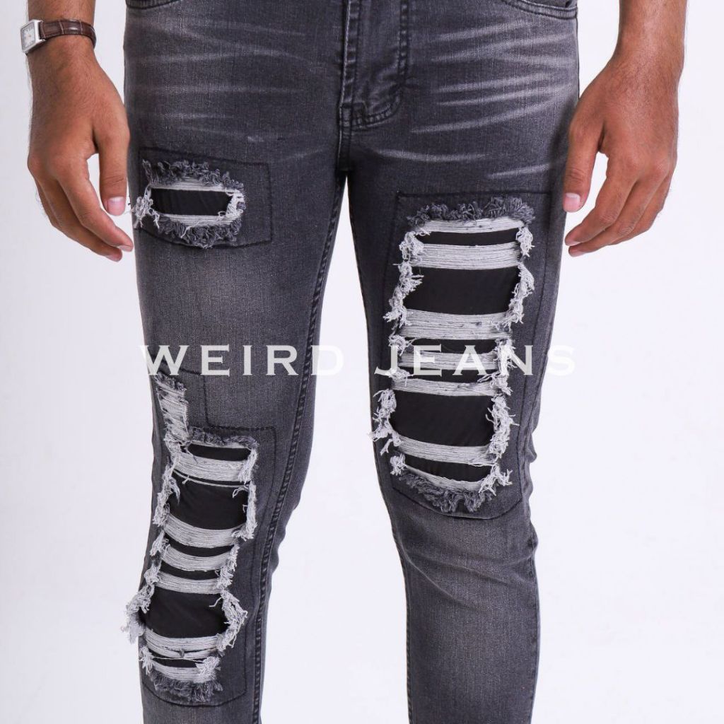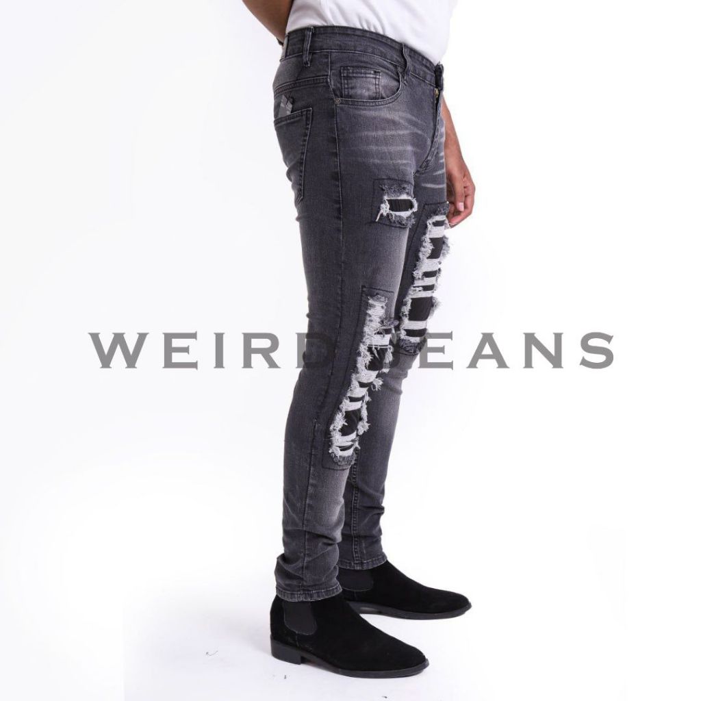 Weird Jeans - Destroyed Denim Disaster Grey - Celana Jeans Pria Slimfit Strech Ripped Sobek Tambal