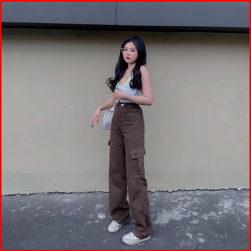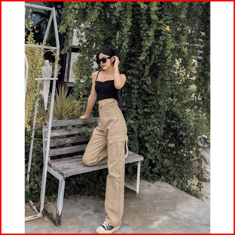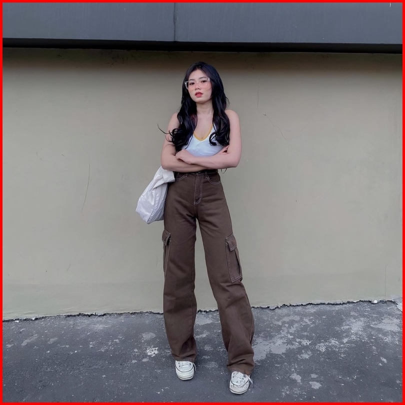 Highwaist Cargo Jeans Wanita Terbaru - High Waist Jeans Cargo Wanita Vol.2