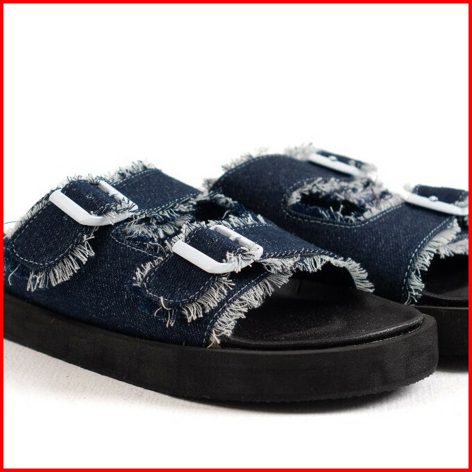 Sandal Platform Wanita Terbaru Tinggi 3cm Bahan Kanvas Warna Navy Empuk Dan Ringan Size 36-41