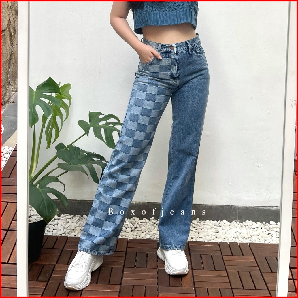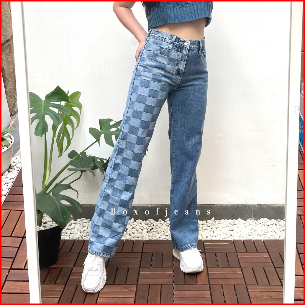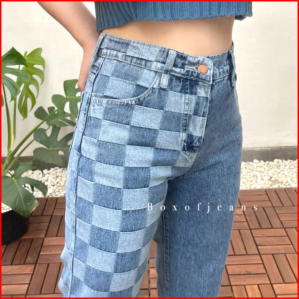 Boxofjeans - Hotty Cullote Jeans - Two Tone Checker Board Catur