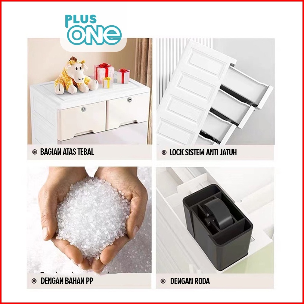 Plus One Lemari Plastik Pakaian Anak Dan Dewasa Ukuran Jumbo 4 Tingkat Kamar Tidur Dapur - 1225