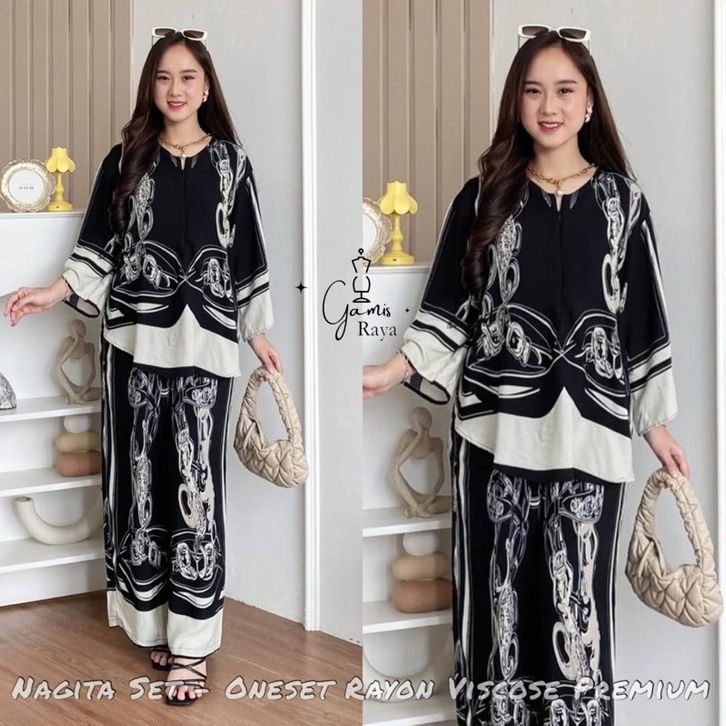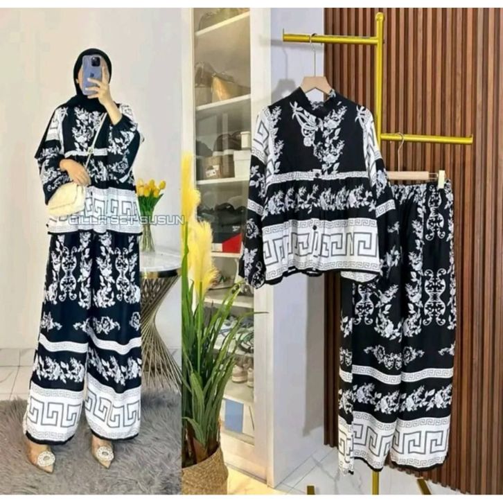 [Mall] One Set Wanita Kekinian Setelan Rayon Susun Celana Kulot Lengan 7/8 Setean Jumbo Bahan Rayon Adem Nyaman One Set