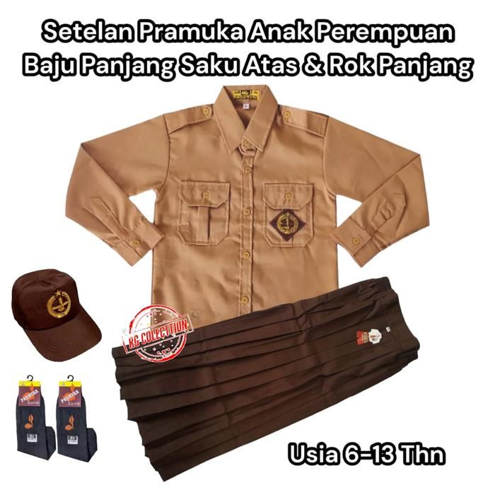 baju seragam sekolah anak Setelan Lengkap Seragam Pramuka Sekolah SD Anak Perempuan Baju Panjang Saku Atas Rok Panjang