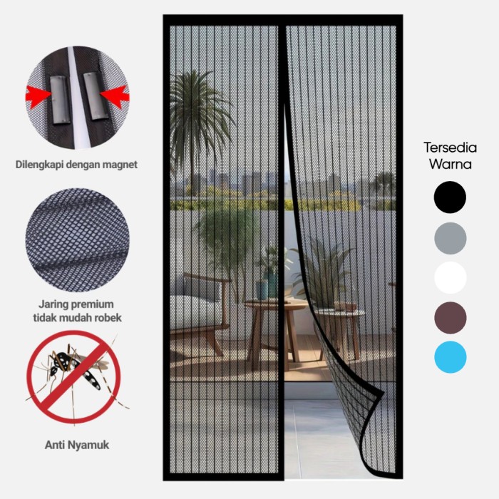TAFFHOME TIRAI PINTU ANTI NYAMUK SERANGGA MAGNET MAGNETIC SCREEN JENDELA KAMAR CNY121 HITAM 100X210CM