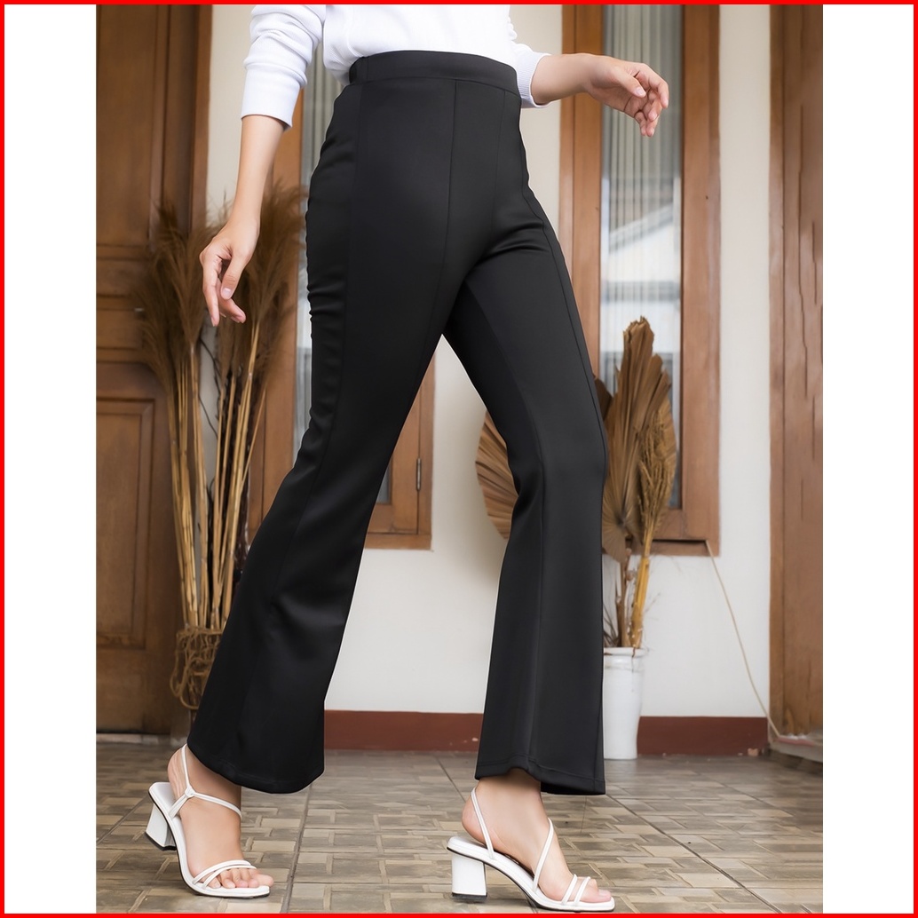 Haymeeidn - Celana Cutbray Scuba Black Bawahan Highwaist Casual Cutbray Kantor Warna Hitam 2578