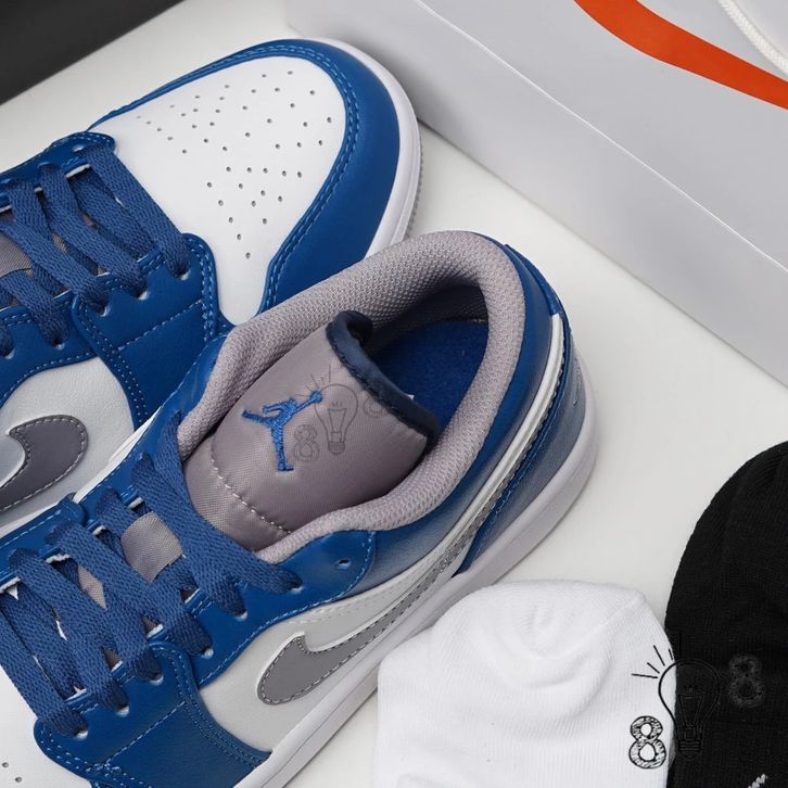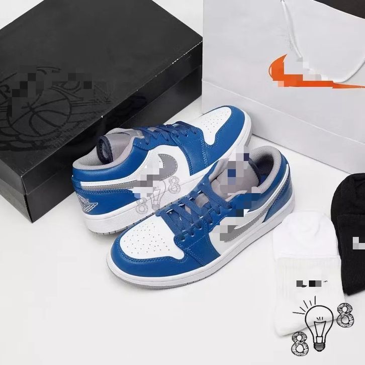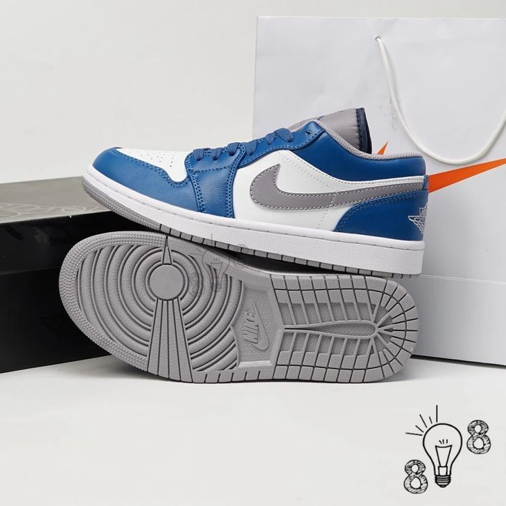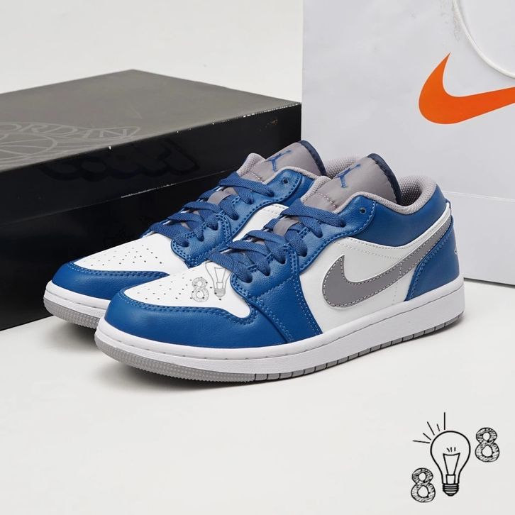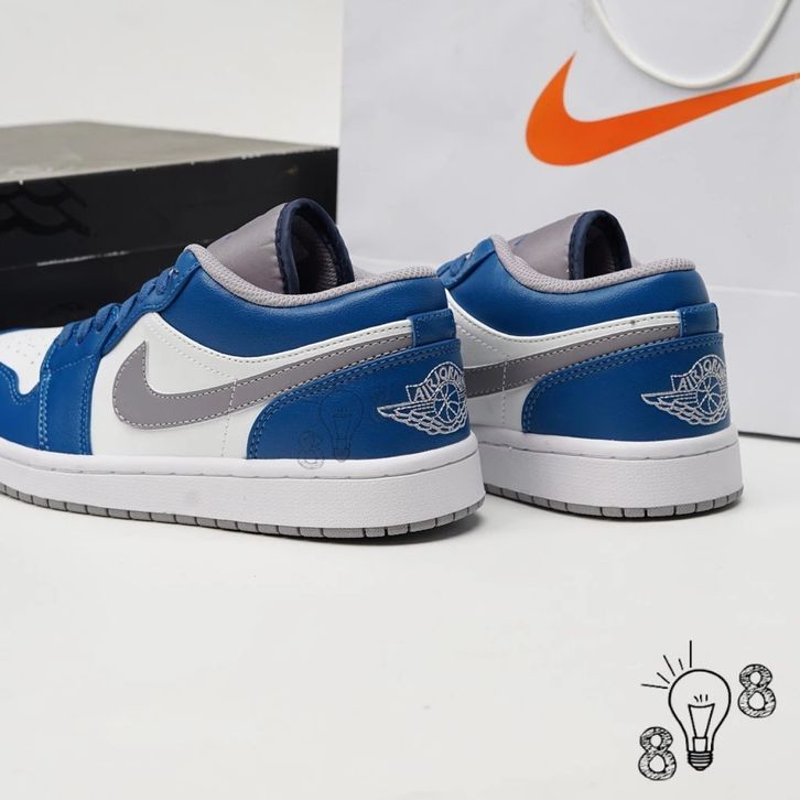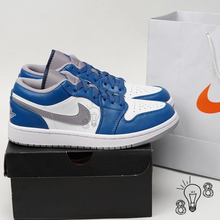 Sepatu Sneakers Pria Nike Air Jordan 1 Low Blue True Cement Best Seller BNIB Kualitas Import Premium