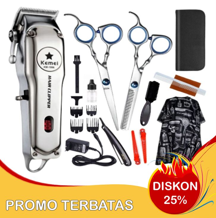 Paket Usaha Cukur Rambut Alat Mesin Cukur Rambut Elektrik Portable Rechargeable Professional Kemei Km-1996 Cas Charger H