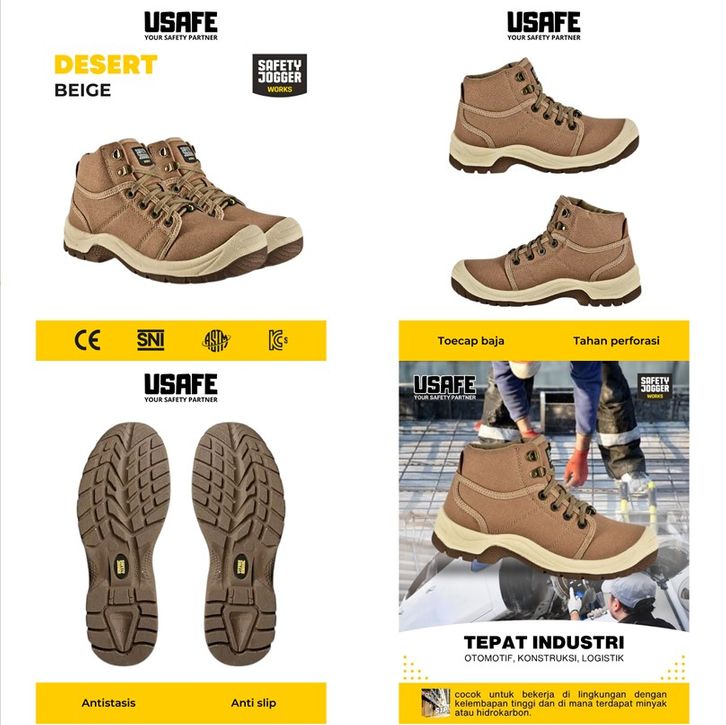 Sepatu Safety Jogger Desert Khaki Brown Sand Coklat Sepatu Safety Pria Jogger Sepatu Kerja Pria Sepatu Outdoor Pria