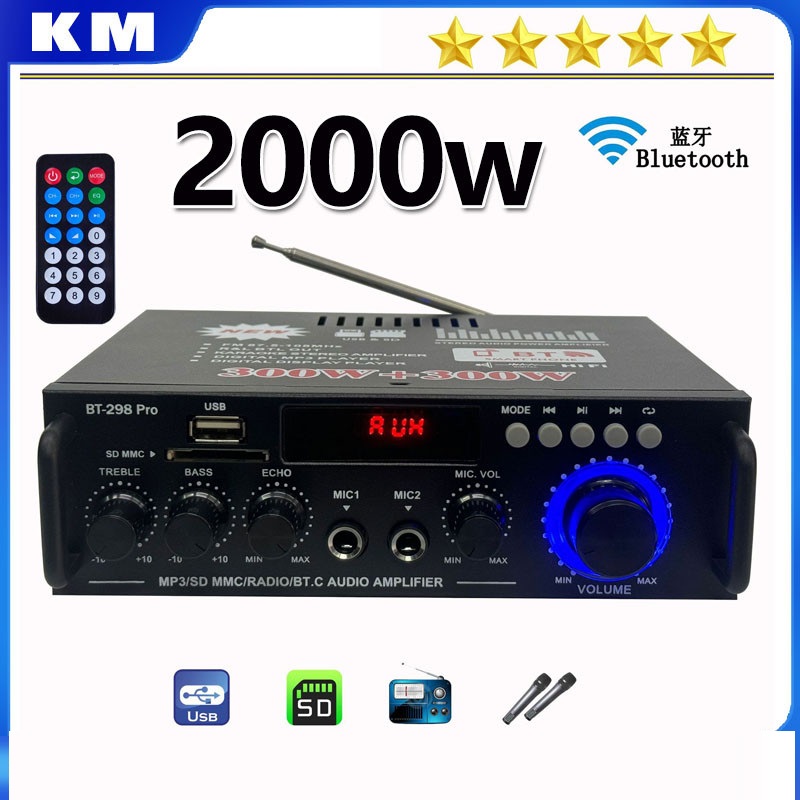 POWER AMPLIFIER SOUND SYSTEM / POWER AMPLIFIER MINI / AMPLIFIER DAYA 2000 WATT FULL BASS FLECO BT-198B PRO AUDIO PENGUAT