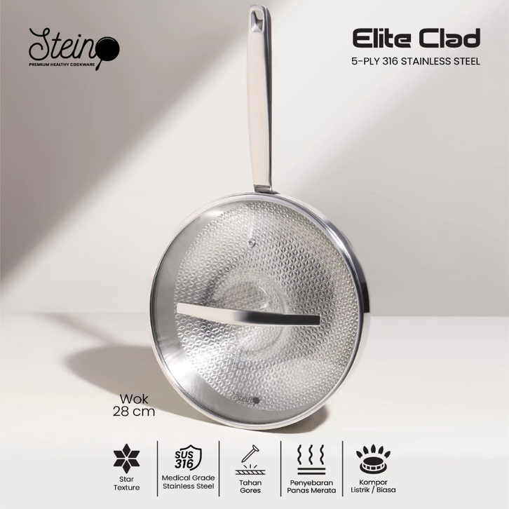Steincookware Elite Clad Wajan Stainless Steel 28cm - Panci Stainless STEIN Wok 28cm Wok 28 cm SUS 316