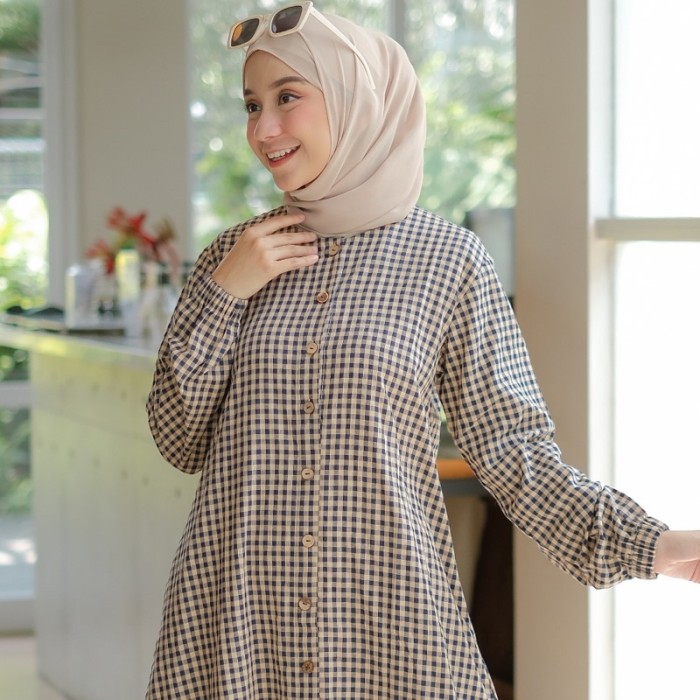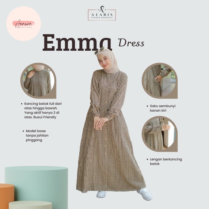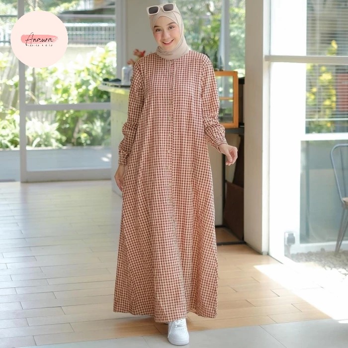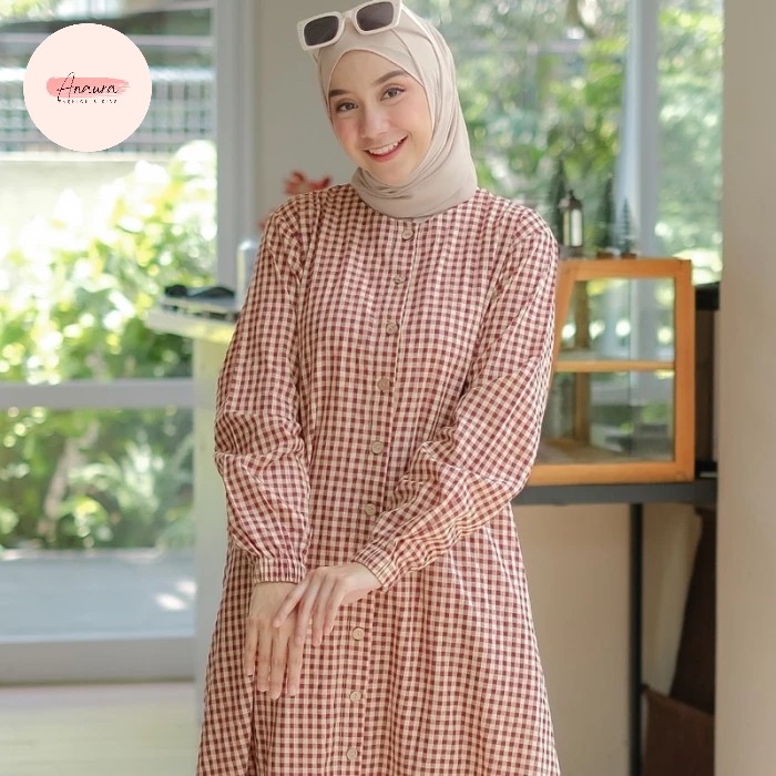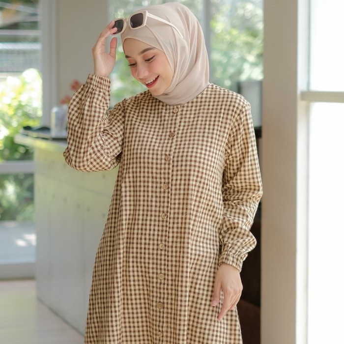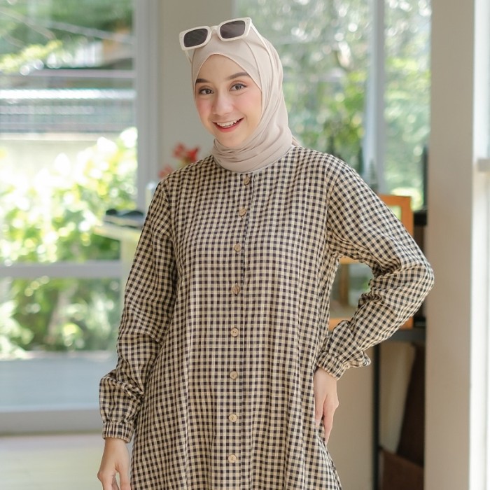 GAMIS KATUN HARUKA MOTIF KOTAK KOTAK / GAMIS KANCING / EMMA DRESS - BLACK, S