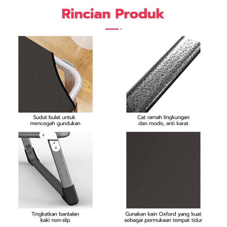 Ranjang Lipat 193 x 62CM Kursi Malas Tempat Tidur Lipat Santai Folding Bed Dengan Bahan Kain Logam Premium Stylish