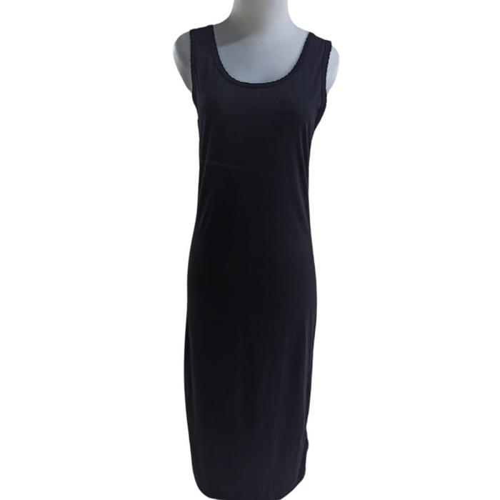 PROMO DALEMAN TERUSAN GAMIS PANJANG WANITA gg00lld22EN NICK DALAMAN KATUN LEMBUT NYAMAN CASUAL DRESS - HITAM, M