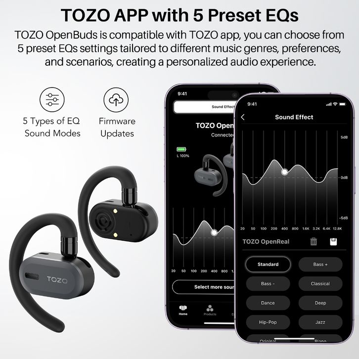 TOZO OPEN BUDS WIRELESS EARPHONE BLUETOOTH 5.3 OVER EAR SPORT TOUCH CONTROL DUAL AXIS CLEAR CALL ANTI KERINGAT APP EQ