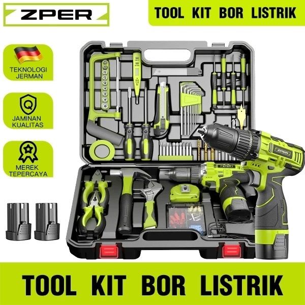 ZPER Satu Set Alat Perkakas Bor Listrik Cordless Tang Obeng Palu Kunci Pas Toolkit 124 in1 pcs ZP027