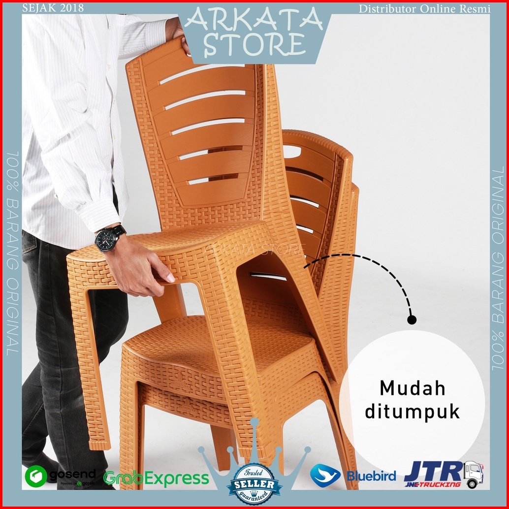 Ol 203 - Olymplast Kursi Bangku Sandar Sender Plastik Rotan Anyam Anyaman Makan Kursi Teras Plastik Kursi Santai Modern
