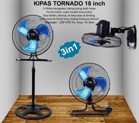 Td 3 In 1 Stand Fan Wall Fan Desk Fan Kipas Tornado Td-sf18 18 Inch Garansi Resmi