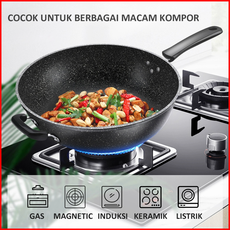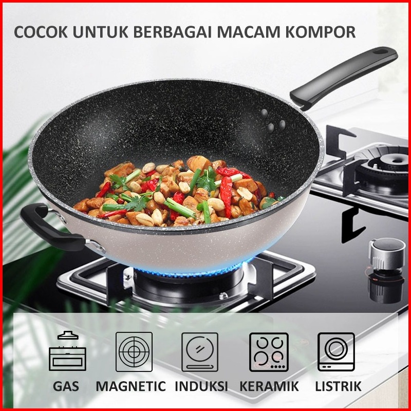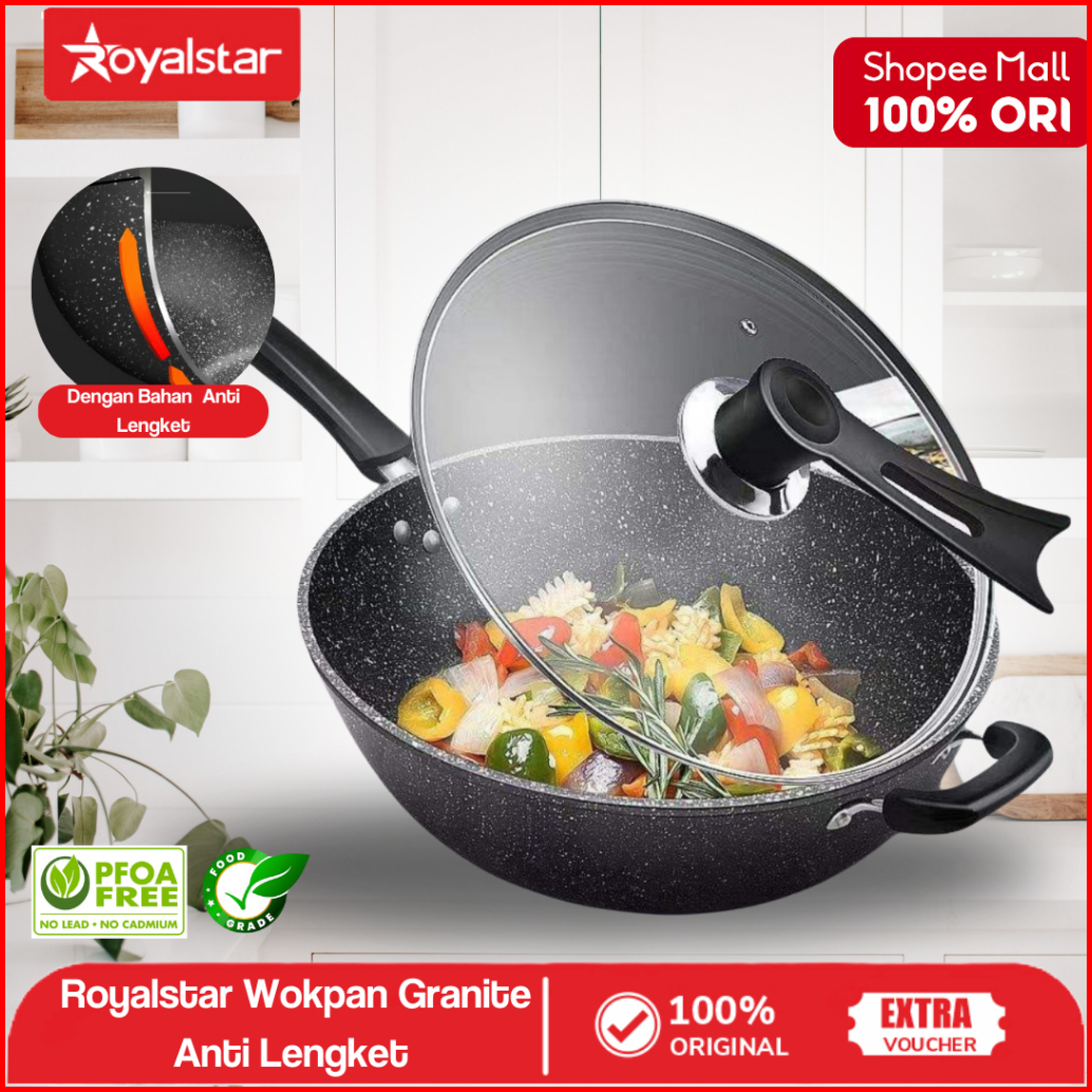 Royalstar Korean Style Marble Granite Kitchen Daily Wokpan 30cm Lid - Panci Wajan Penggorengan