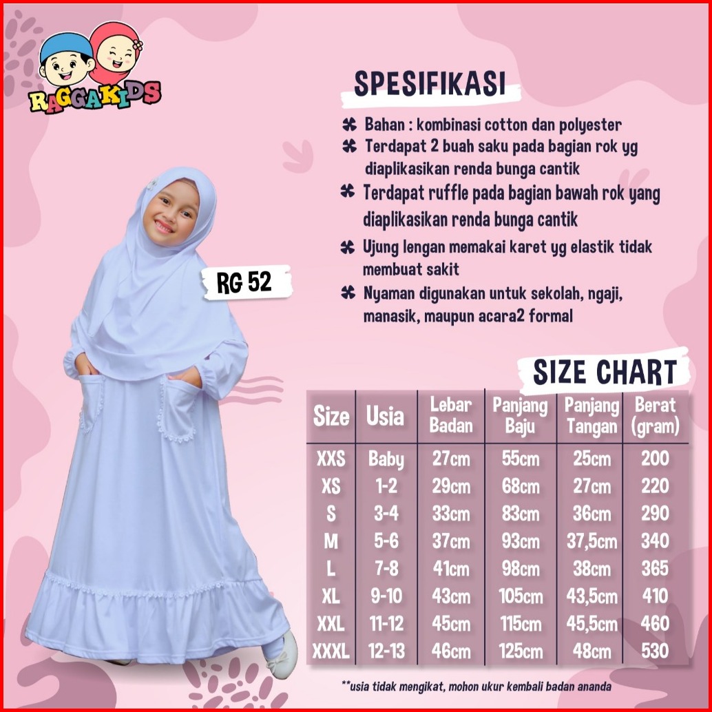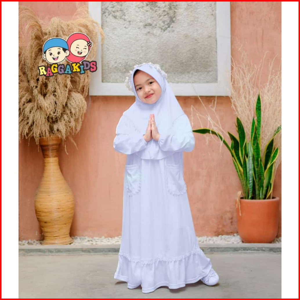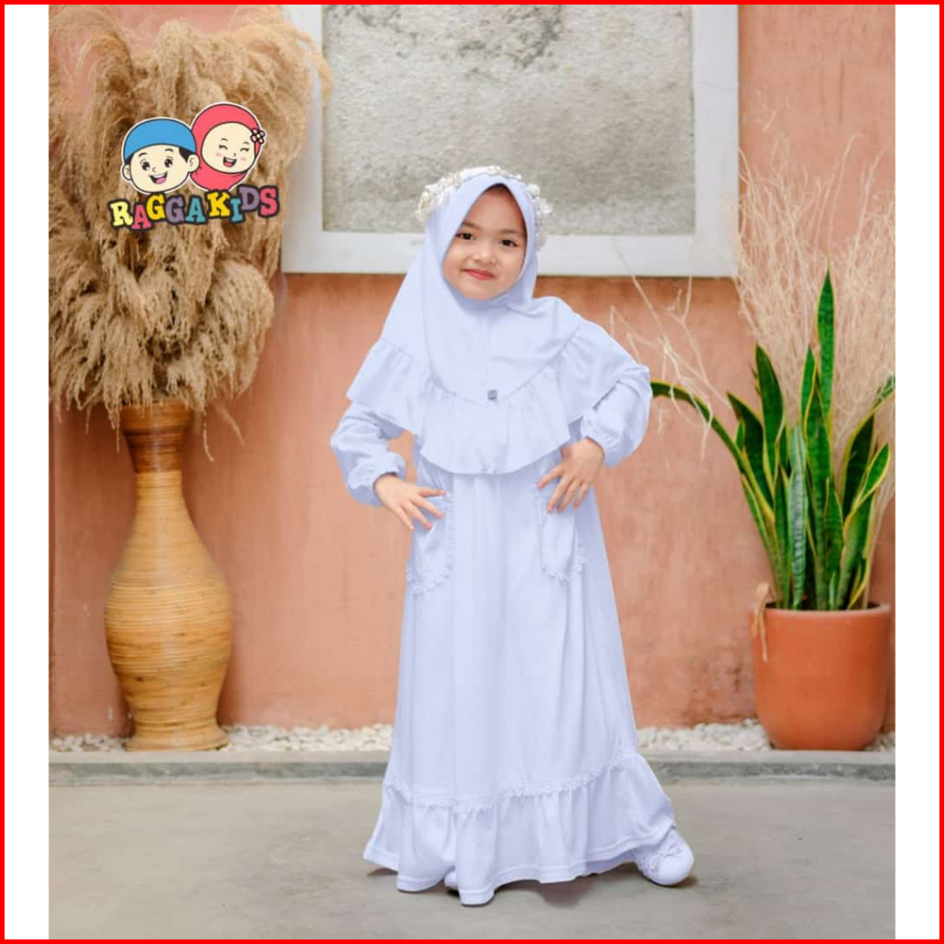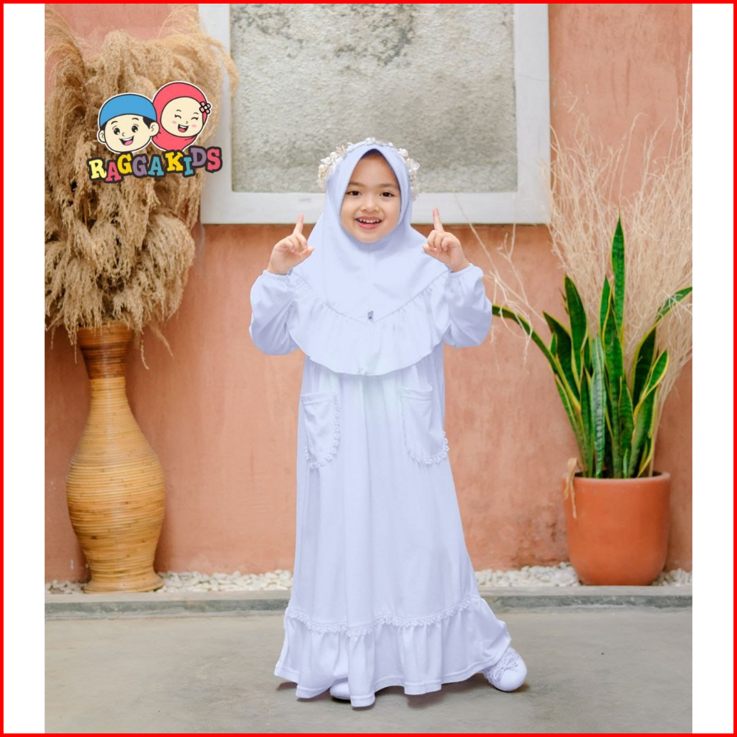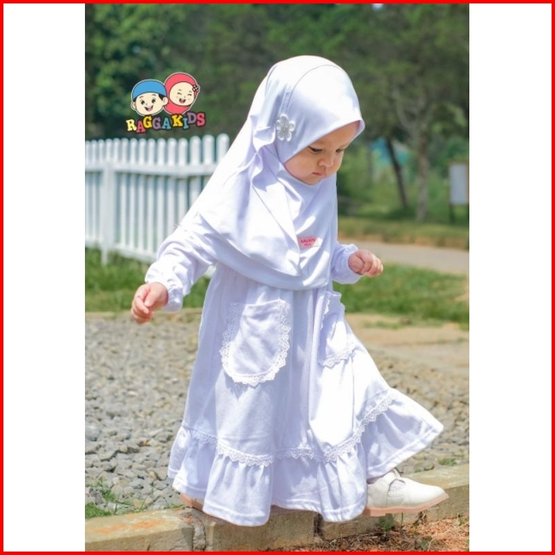 Baju Pakaian Gamis Muslim Muslimah Long Dress Set Anak Anak Perempuan Warna Putih Raggakids Rg52